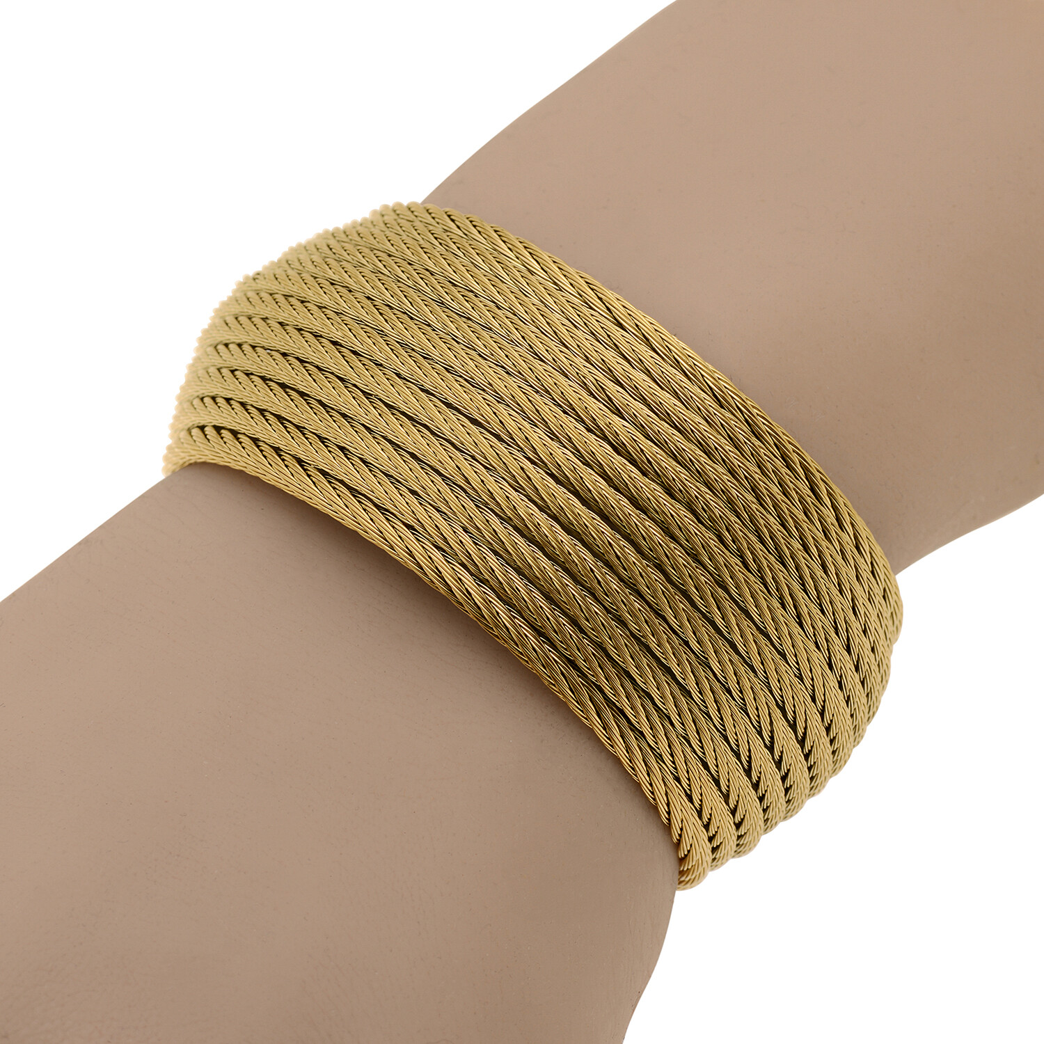 18k Yellow Gold + Stainless Steel Cuff Bracelet // 7" // New