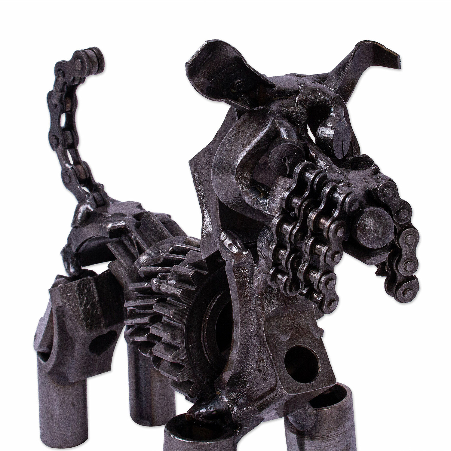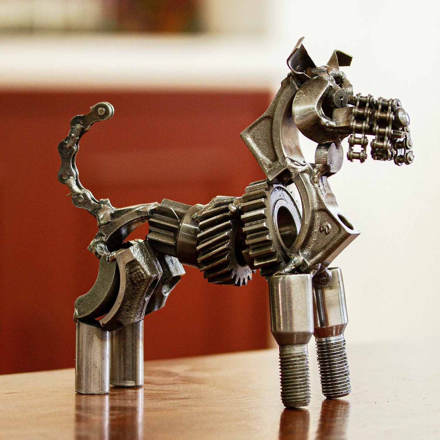 Armando Ramirez recreates one of the most beloved dog breeds using an eclectic mix of scrap metal parts. He combines gears, screws, and bicycle chains to sculpt a schnauzer with its characteristic stance and mustache. Gift it to your dog-loving friend or— better yet— a proud schnauzer owner! Armando's sculptures have a rustic, unpolished finish.