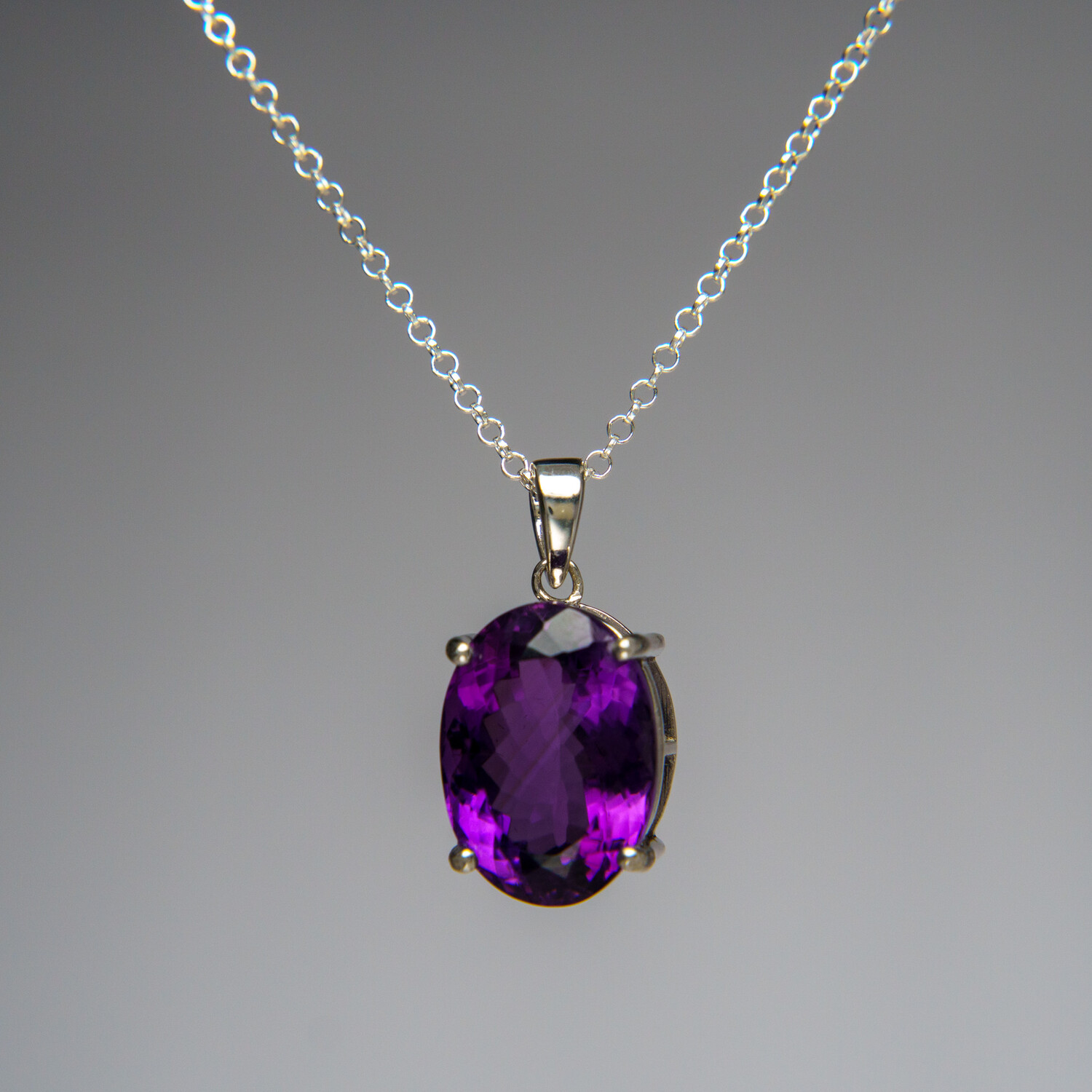 Genuine Sterling Silver Amethyst Gemstone Pendant with 18" Sterling Silver Chain // v.6