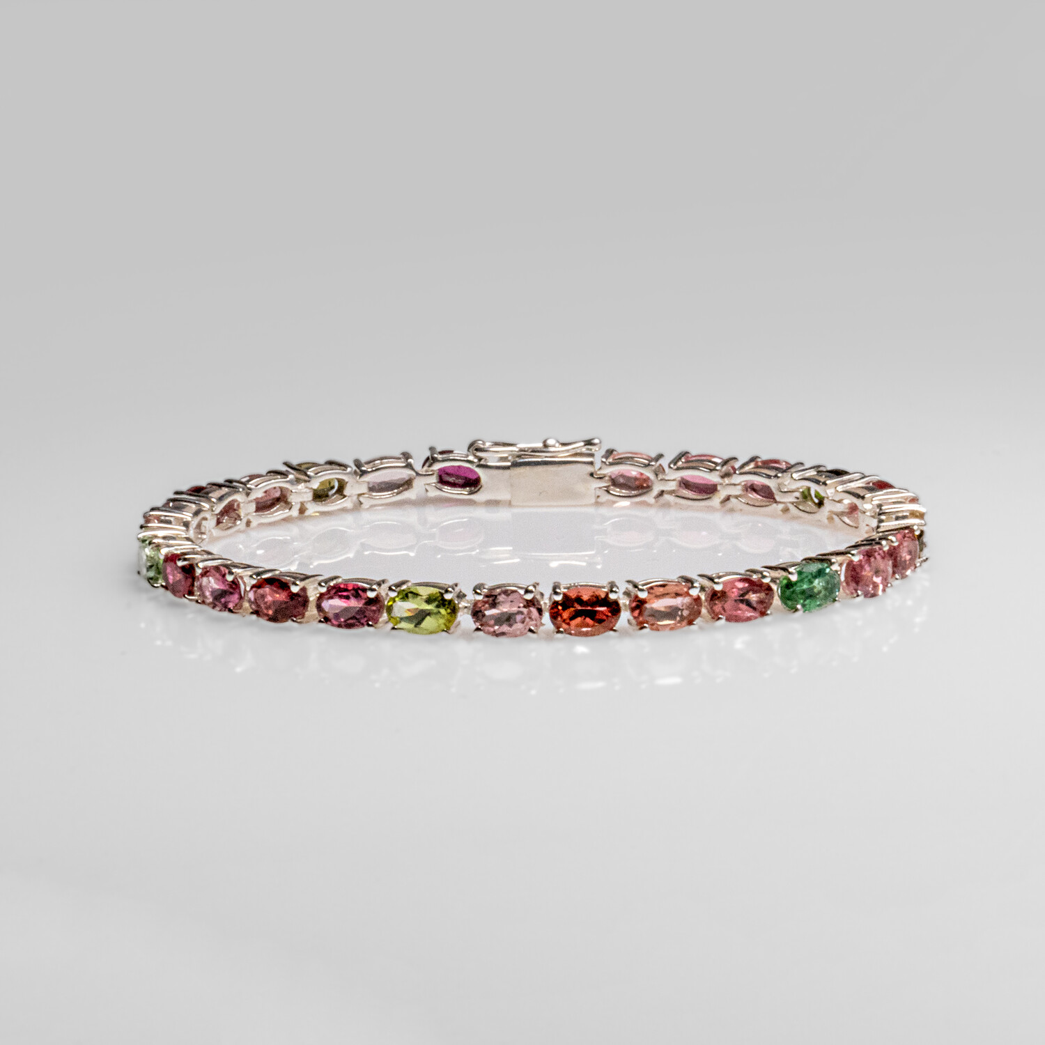 Genuine Tourmaline Gemstone Tennis Bracelet in .925 Sterling Silver