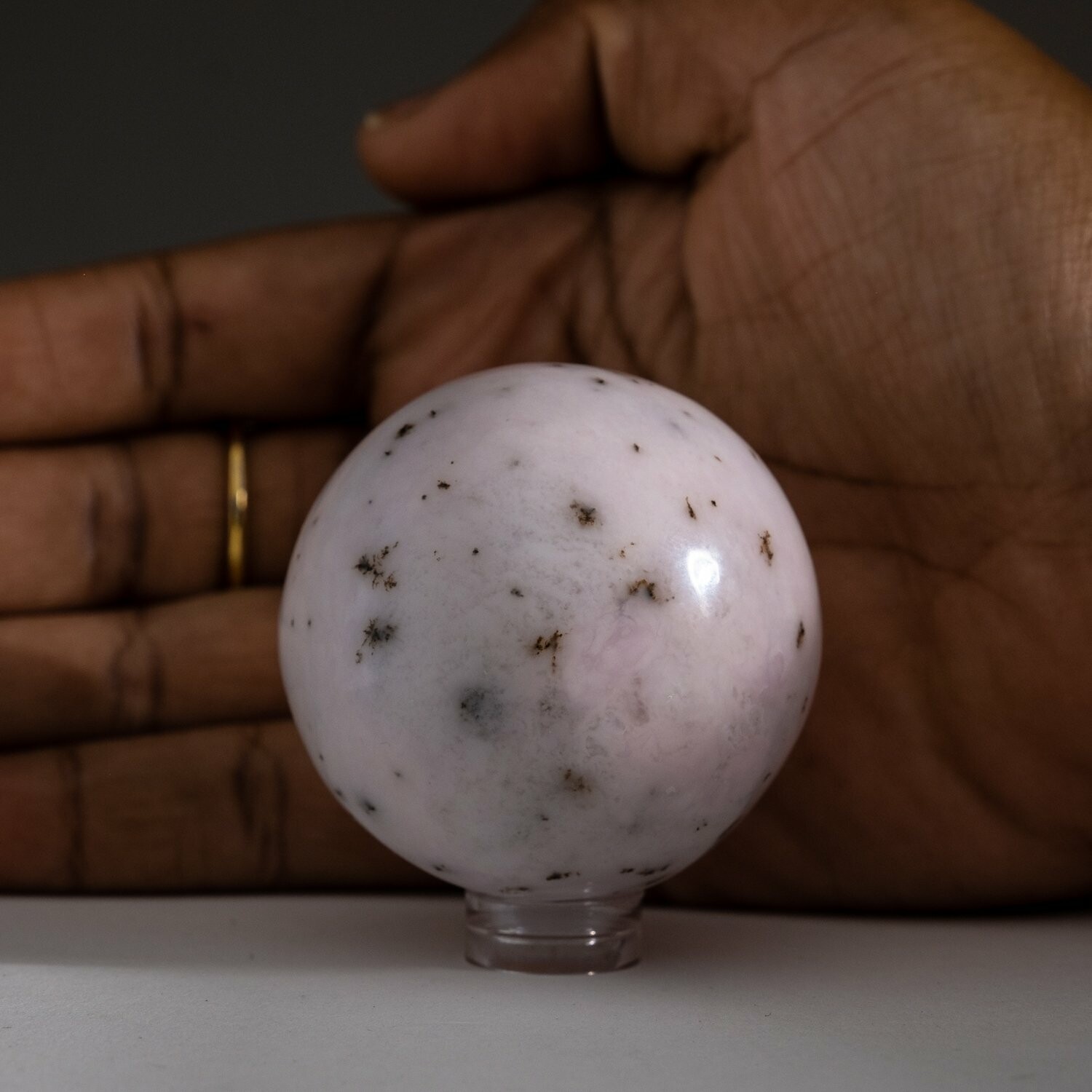 Genuine Polished Pink Opal Sphere with Acrylic Display Stand