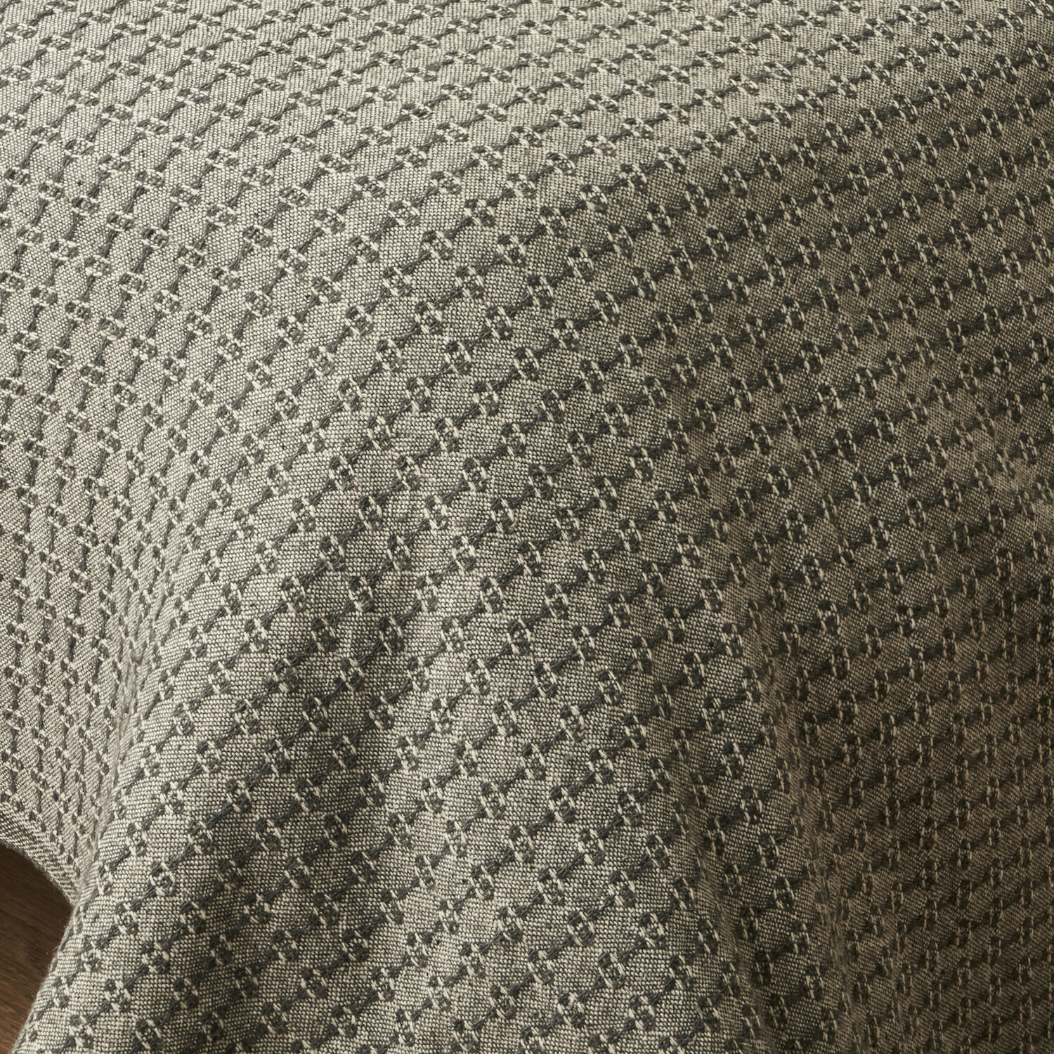 A jacquard-patterned smoke gray bedspread sized 79" x 91". Elegant and practical, it adds a refined touch to your bedroom while being easy to care for.