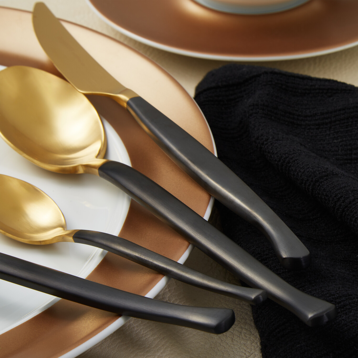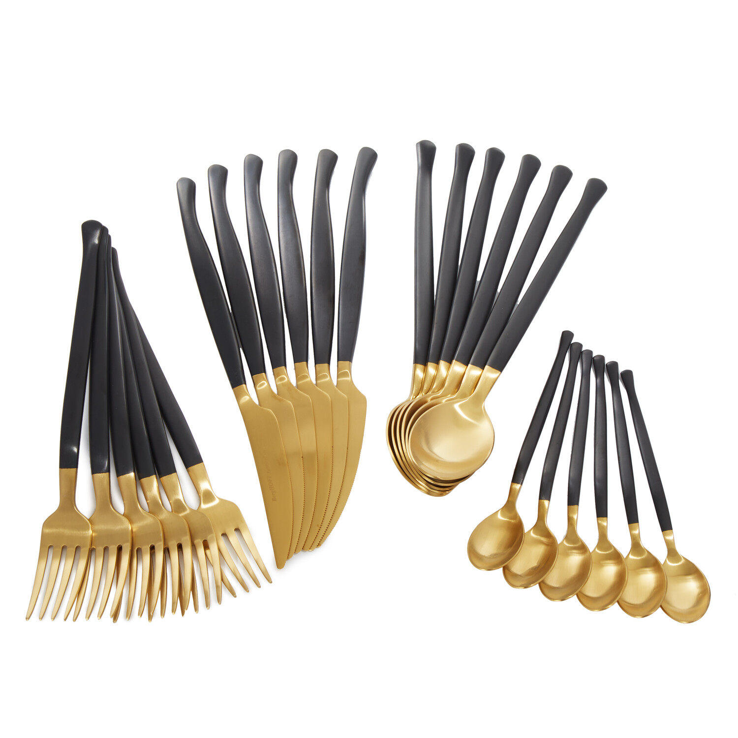 BergHOFF DiNA Evolve 24Pc Stainless Steel Flatware Set, Black and Gold