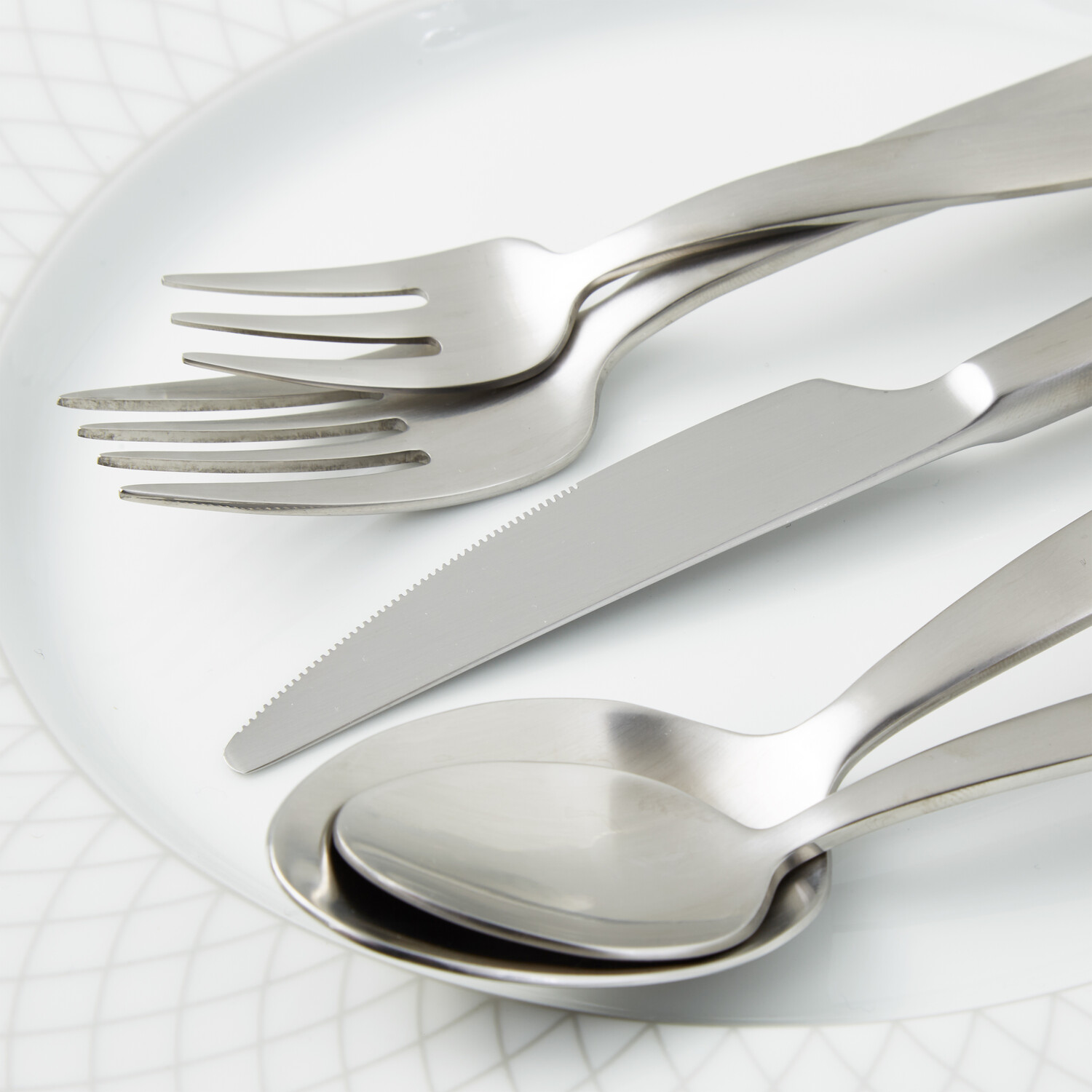 Bring timeless elegance and functionality to your dining experience with the BergHOFF Leo Legacy 20pc Flatware Set. Crafted from premium 18/10 stainless steel, this sleek silver set offers long-lasting durability and resistance to rust, stains, and corrosion. The set includes everything you need for a complete place setting. With a polished finish and modern design, the Leo Legacy flatware is ideal for both everyday meals and special occasions. The ergonomic handles offer a balanced feel and comfortable grip, while the sophisticated look elevates any table setting. Whether you’re serving family dinners or hosting guests, this 20-piece set combines classic beauty with practical performance. Dishwasher safe for easy cleaning and built to withstand years of use, it's a must-have for any well-appointed kitchen or dining room. Package includes: 4x Dinner Knives 8.25", 4x Dinner Forks 7.75", 4x Dinner Spoons 8", 4x Coffee/Tea Spoons 5.75", 4x Cake Forks 5.75"