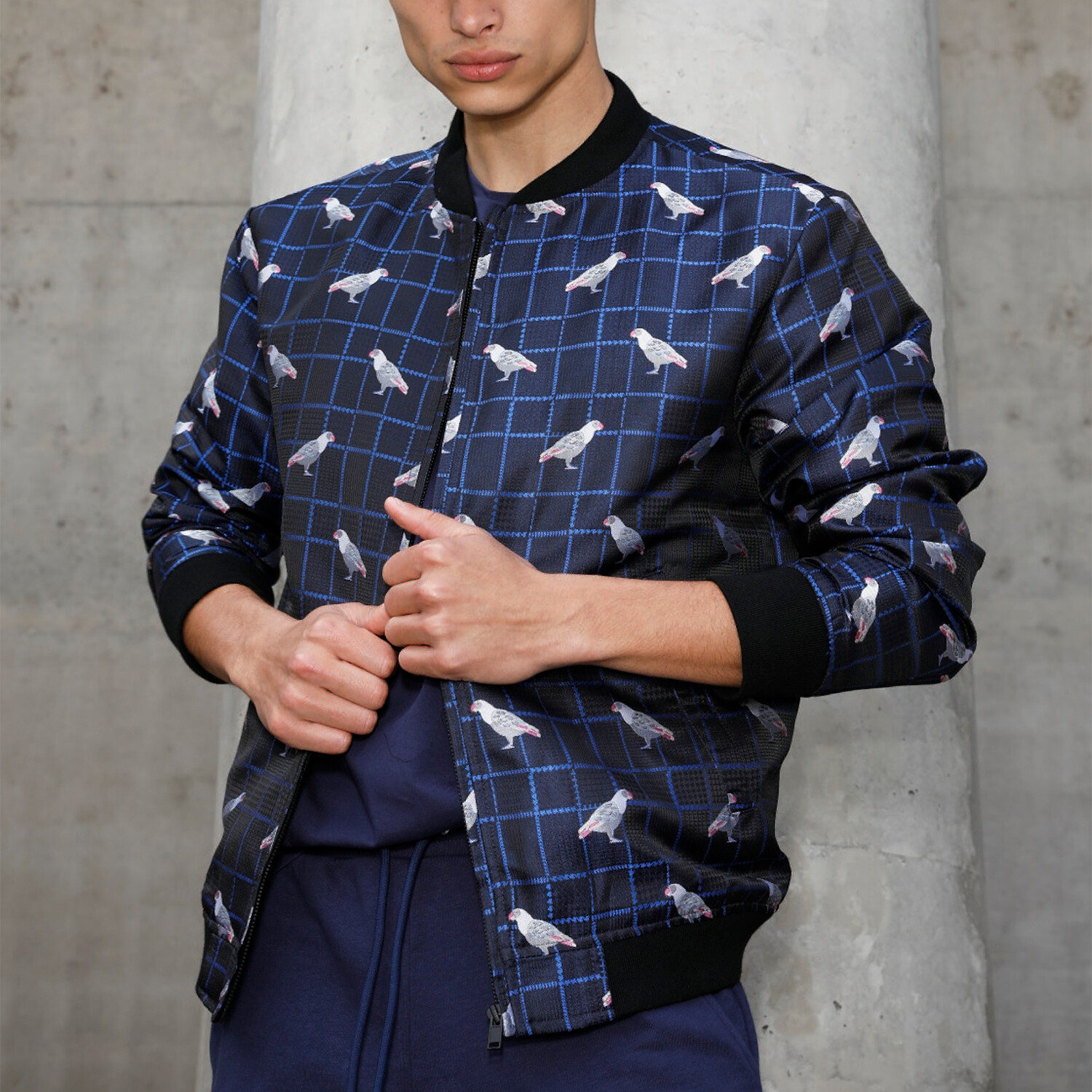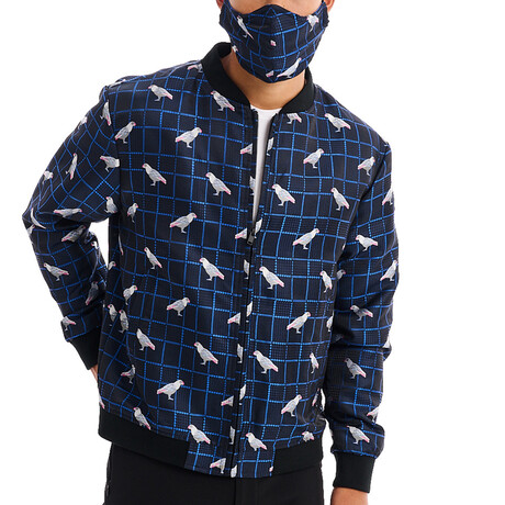 Biz Parrot Print Bomber with Matching Face Mask // Navy + White