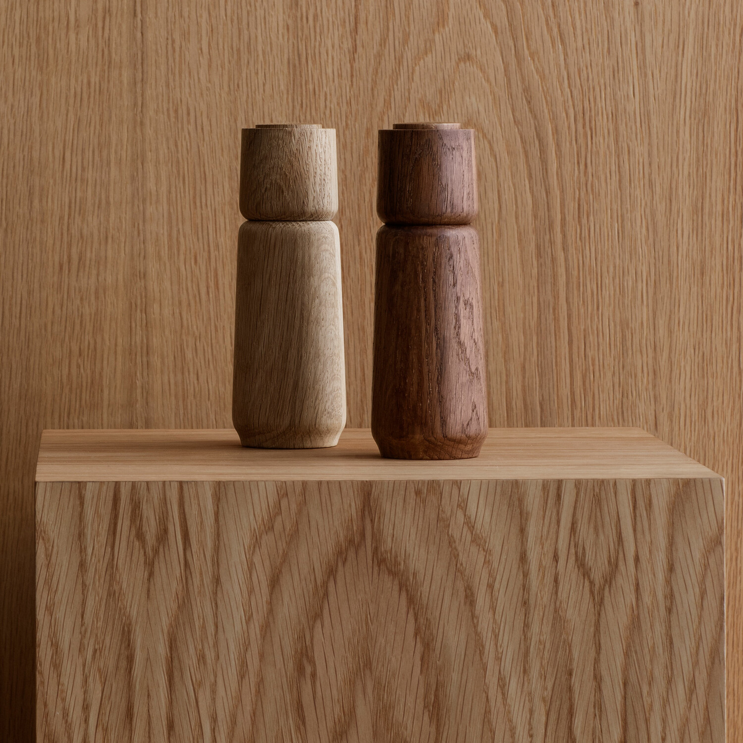 Designed by Theresa Rand in her Copenhagen studio, features a timeless design that elevates the sophistication of your dinner table. Made from oiled oak with a ceramic grinding device, each mill can be used for either salt or pepper, and the grain size can be adjusted. Grinds sprinkle from the mill from the top, avoiding the messiness of salt and pepper grains on your table or counter.