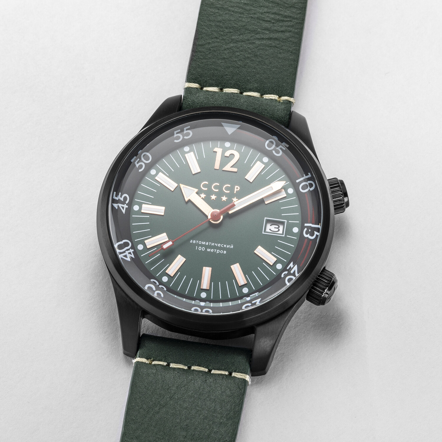 COLLECTION: BLACK SEA MODEL: CP-7043-04 MOVEMENT: MECHANICAL AUTOMATIC CASE MATERIAL: STAINLESS STEEL CASE DIAMETER (MM): 42 CASE THICKNESS (MM): 14 CASE SHAPE: ROUND CASE COLOR: BLACK DIAL COLOR: GREEN BAND: GENUINE LEATHER STRAP BAND COLOR: GREEN BUCKLE: STRAP BUCKLE BAND WIDTH (MM): 20 WATER RESISTANCE: 10 ATM WATCH WEIGHT (G): 150 WARRANTY: 2 YEARS