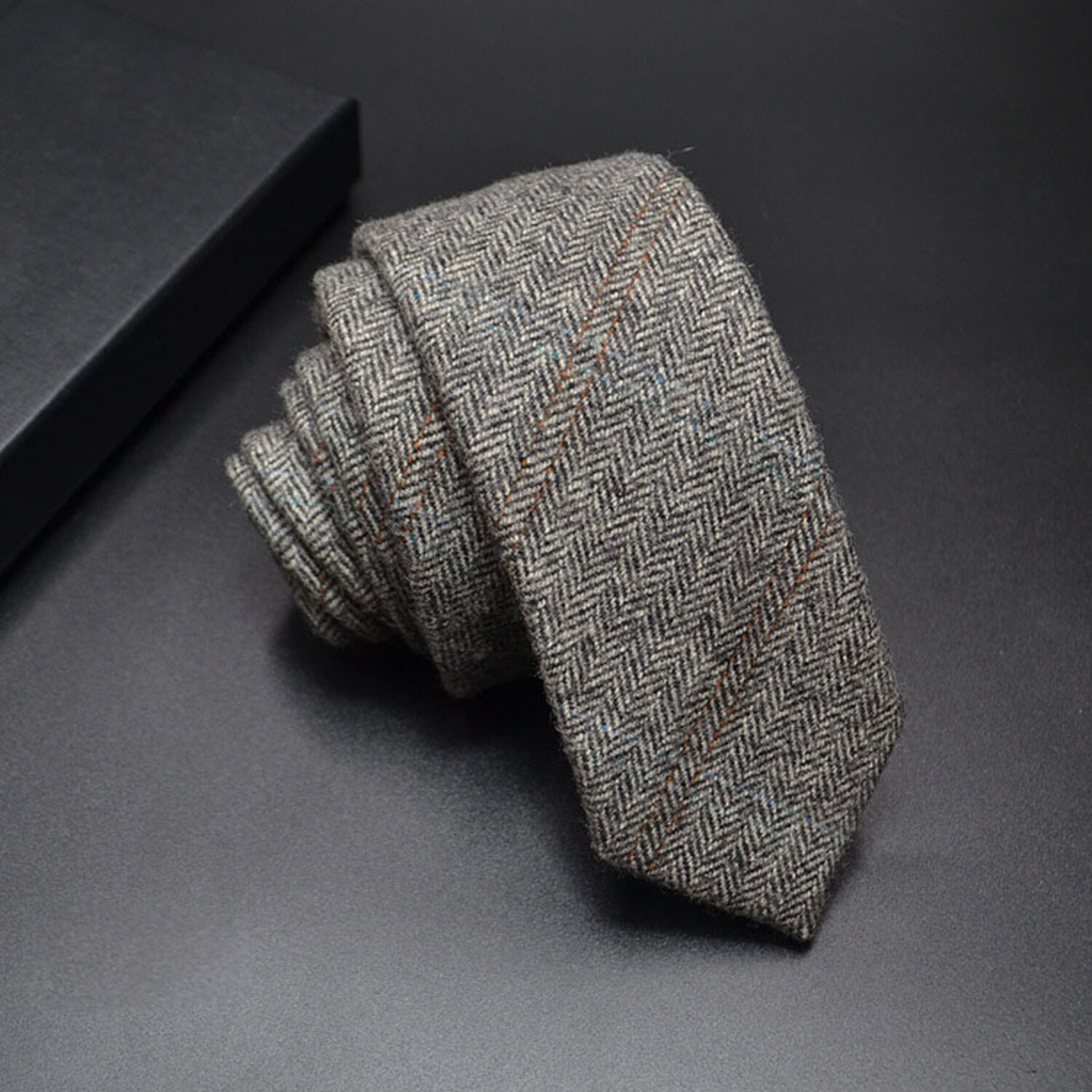 Cotton Neck Ties // Herringbone Pattern Brown with Orange Stripes