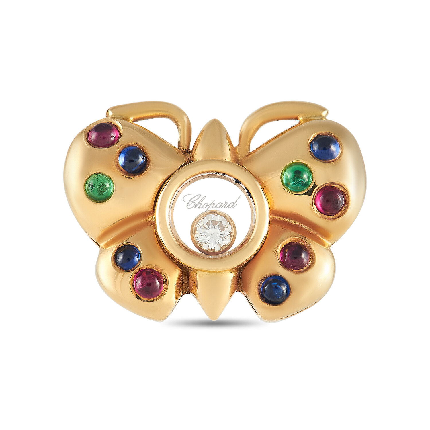 Happy Diamonds 18K Yellow Gold Diamond + Emerald + Ruby + Sapphire Butterfly Brooch // Estate