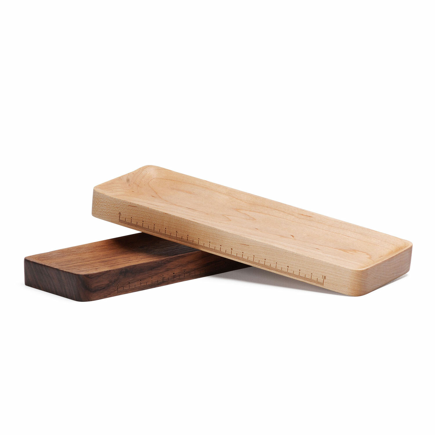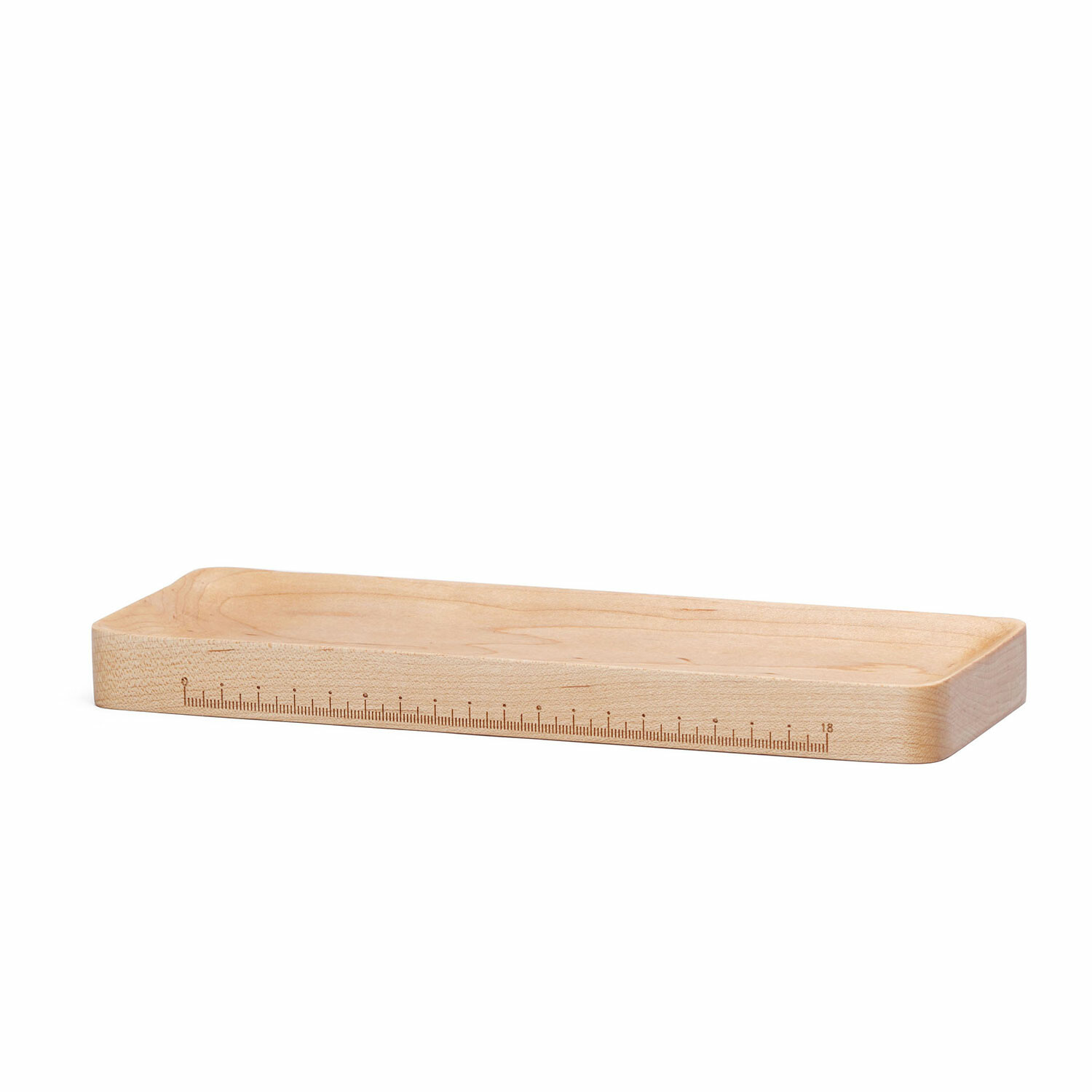 Handcrafted from solid wood, this desk tray is perfect for holding your jewelry, keys, watch, or phone. It's ideal for your desk for organizing pencils, pens, and paperclips, or as a catch-all tray in your entryway to hold your wallet or loose coins from your pocket when you get home from a long day. The possibilities are endless! Minimalist and organic-looking, this wooden valet tray brings a touch of serenity to your home or office.