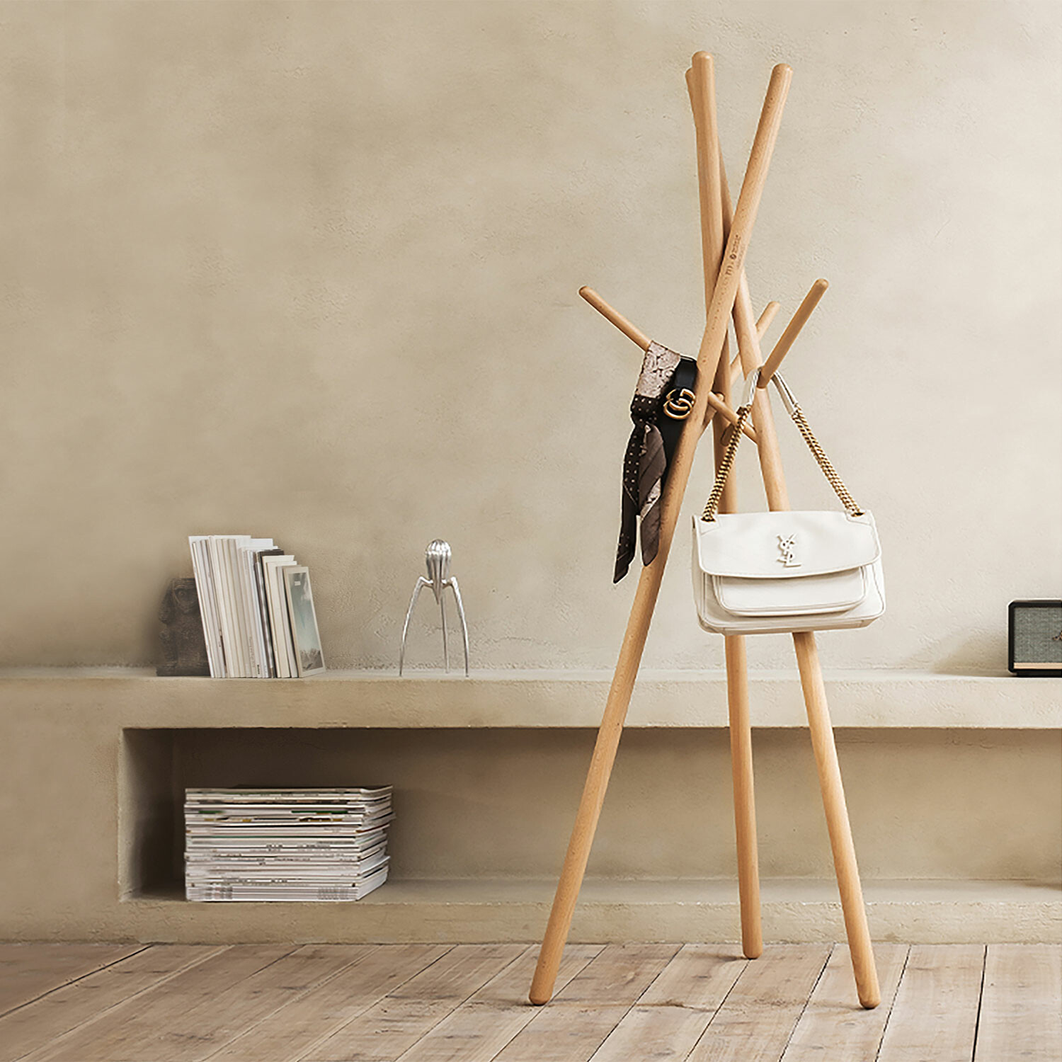 Hand crafted from solid wood, this coat rack is inspired by the traditional woodworking lock mechanism from several thousand years ago. It brings a sophisticated, natural feel to any environment.
