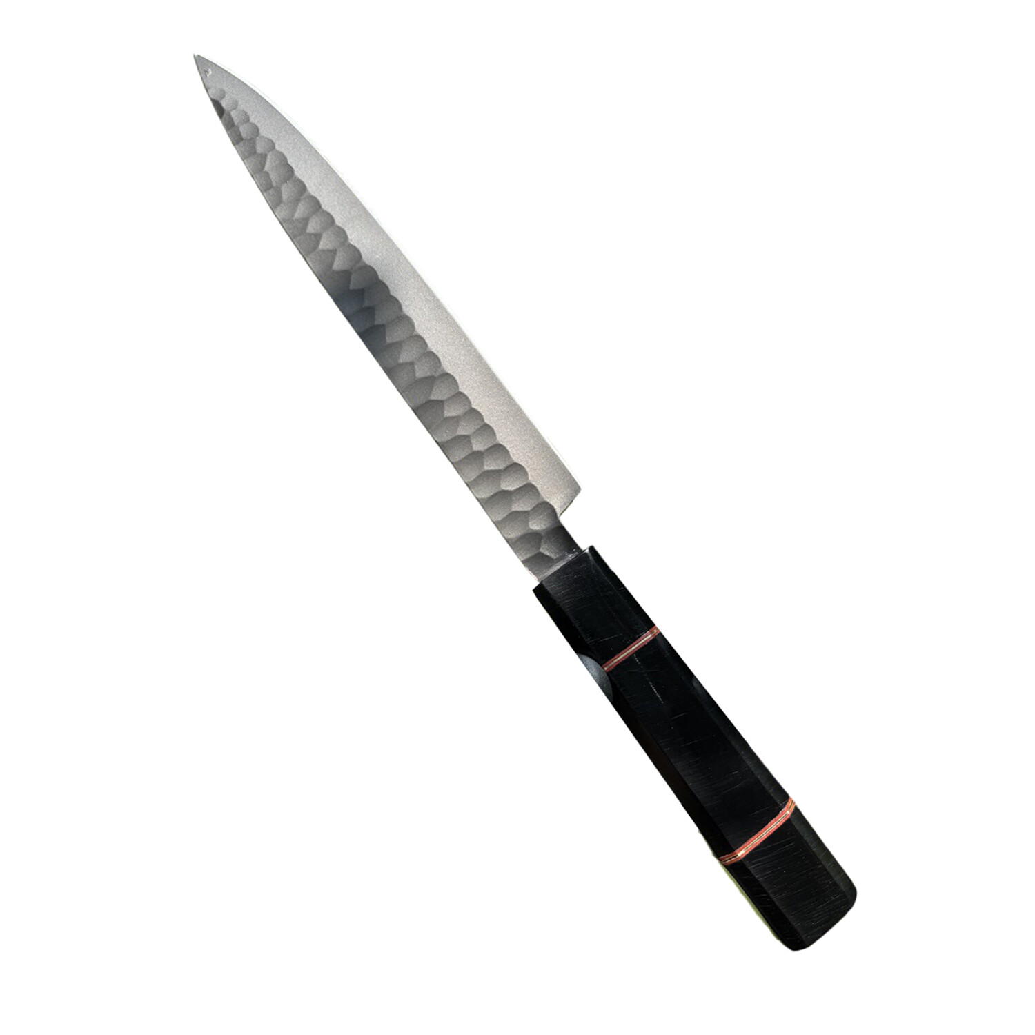 Elevate your cooking precision with this D2 Tool Steel Black Edition 5-Piece Kitchen Knives Set. Each knife in the set is meticulously crafted for optimal performance, offering durability, strength, and versatility in your kitchen. Made with D2 tool steel, renowned for its hardness and edge retention, these knives are designed to withstand the rigors of daily use while maintaining sharpness over time. The sleek black powder-coated finish not only enhances the aesthetic appeal but also provides additional protection to the blade.