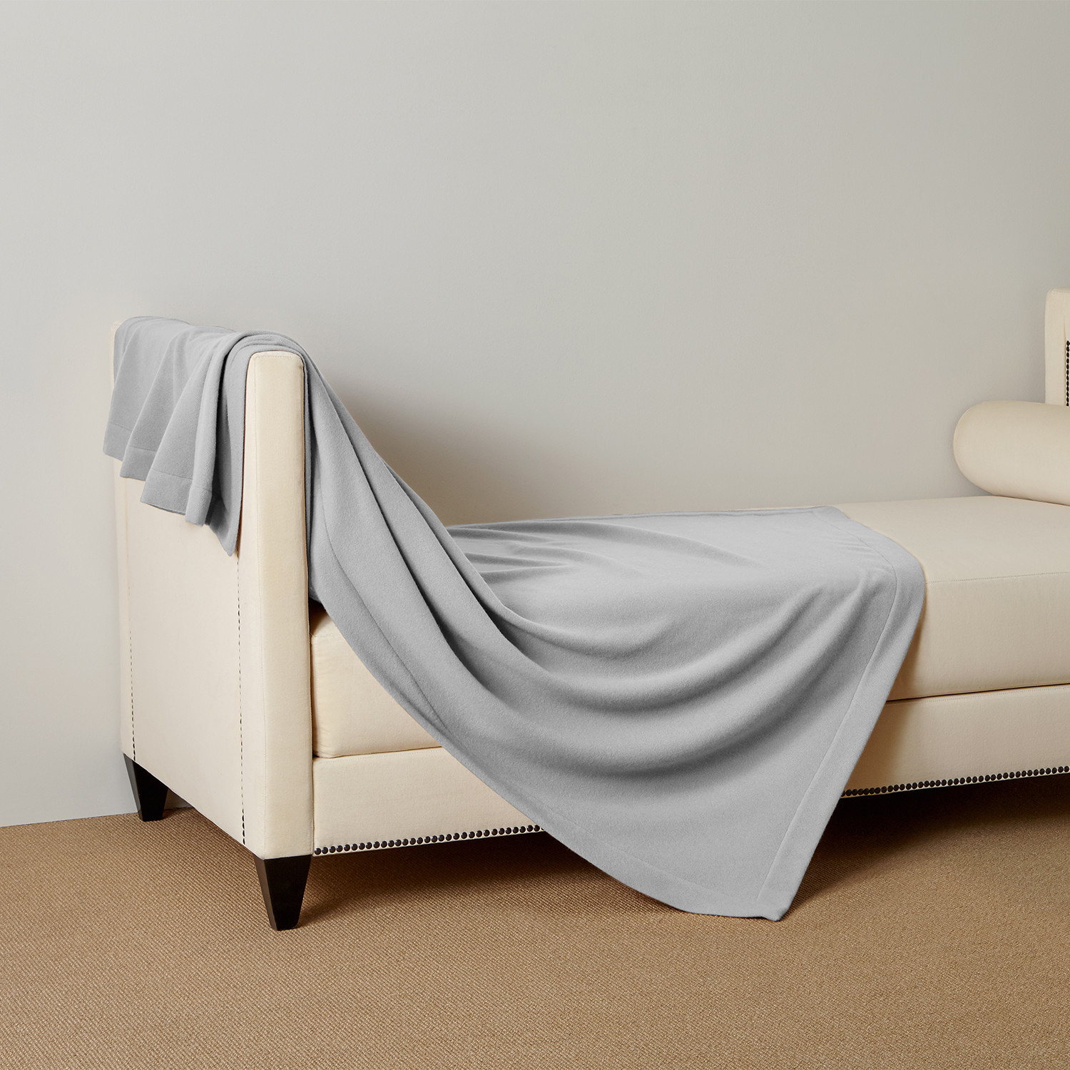 The Status throw is pure casual comfort in heathered wool and cashmere with a solid mitered border that's great for cozying up on the couch in style.
