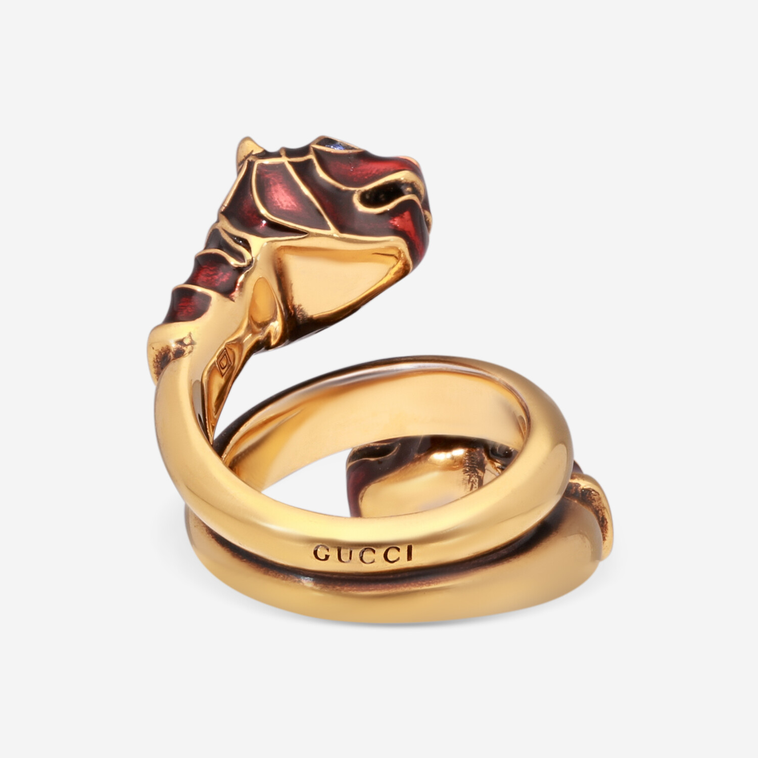 Featuring a fierce tigerhead motif, this ring is beautifully detailed with vibrant enamel and a striking blue Swarovski crystal. Crafted in Italy, this unique piece embodies power and elegance, making it a perfect statement accessory. With a size 5.25 fit, it is ideal for those who appreciate distinctive, luxury jewelry with a modern twist.