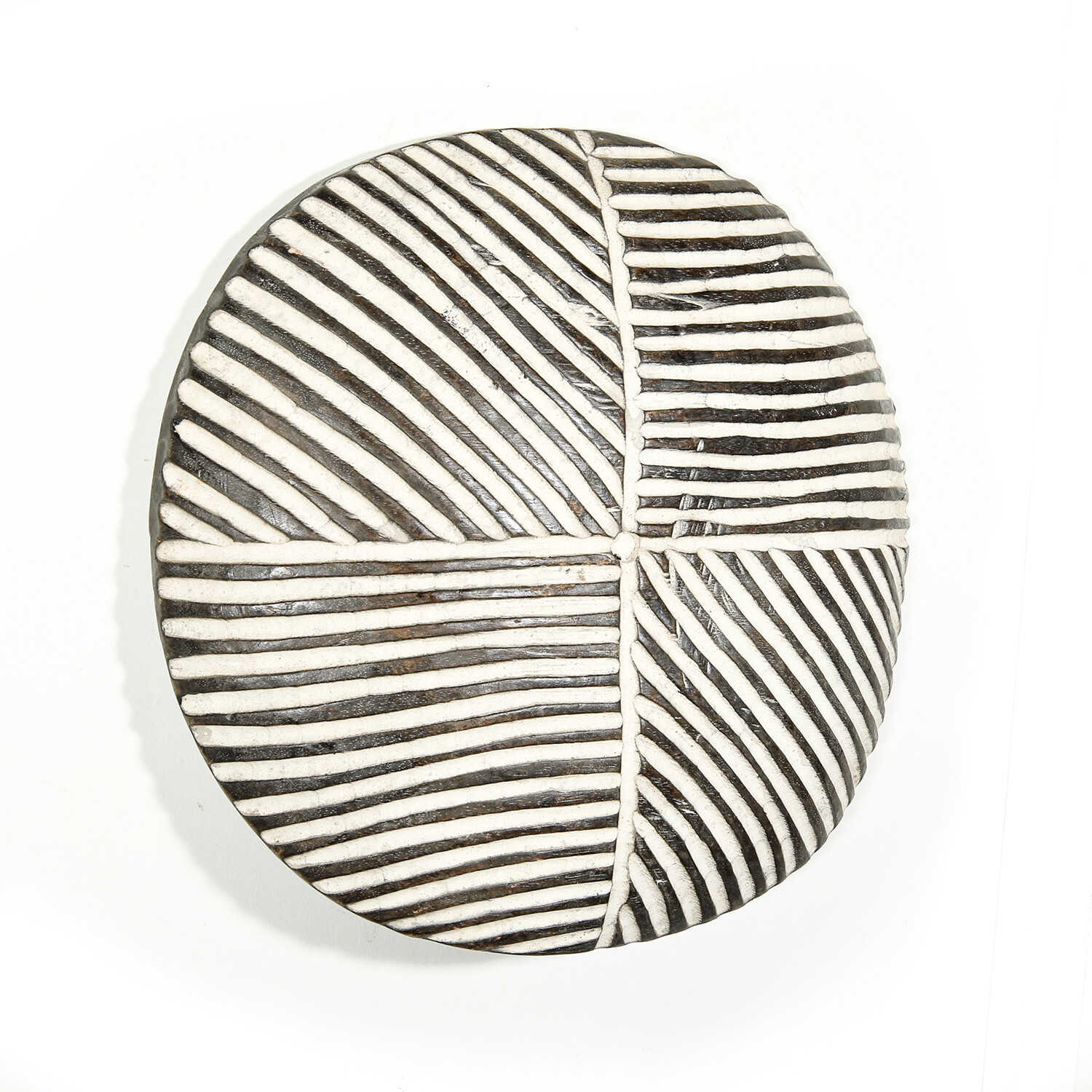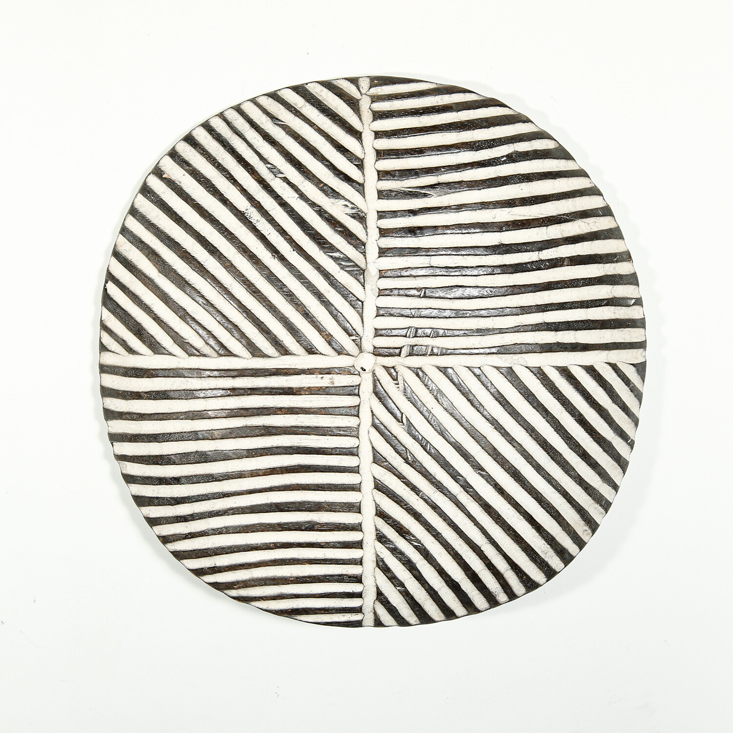 Crafted by artisans in Chams and Fumban, Cameroon, these impressive wooden shields take inspiration from older traditional shields used in battle or ceremonial dance. Each one makes for a fantastic statement piece whether displayed on a shelf or in groupings on your wall. The geometric designs and organic materials add a stunning natural element to your space that blends beautifully with any modern decor.