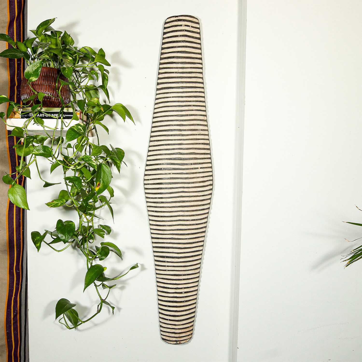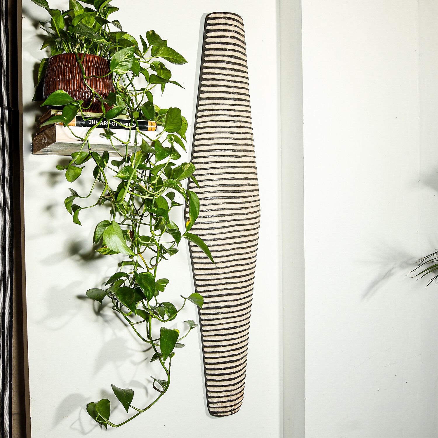 Crafted by artisans in Chams and Fumban, Cameroon, these impressive wooden shields take inspiration from older traditional shields used in battle or ceremonial dance. Each one makes for a fantastic statement piece whether displayed on a shelf or in groupings on your wall. The geometric designs and organic materials add a stunning natural element to your space that blends beautifully with any modern decor.