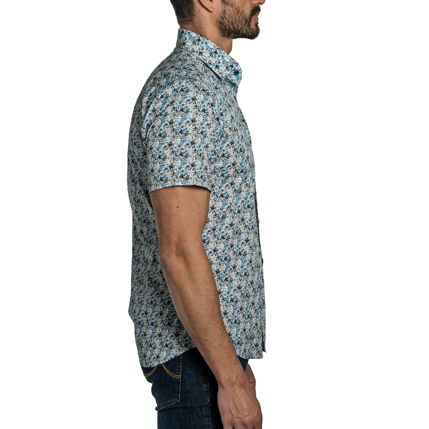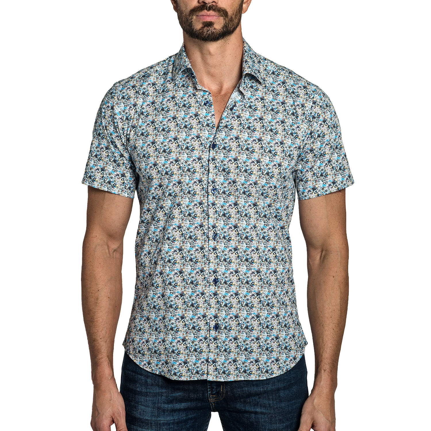 Vince Men's Short Sleeve Shirt // White + Blue Floral