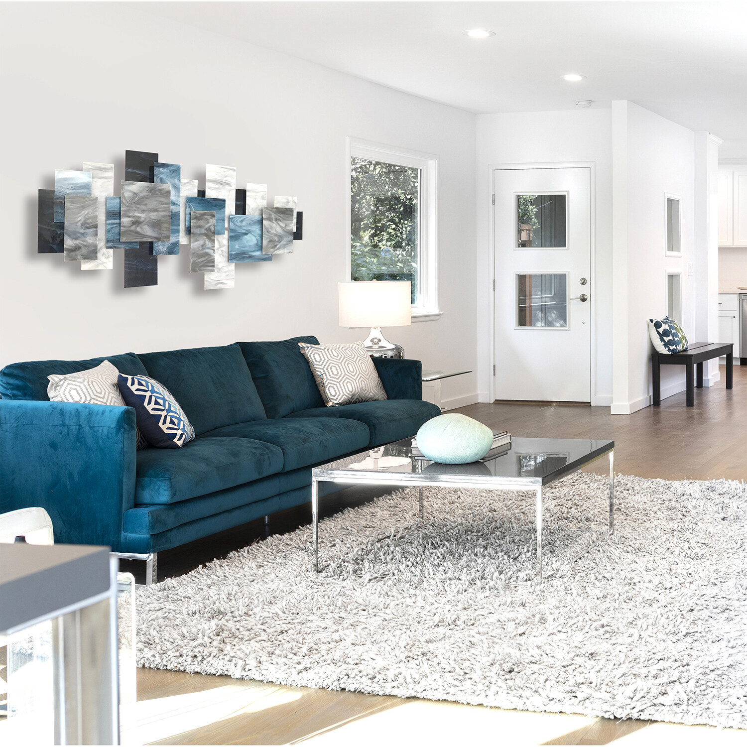 Karo Studios features the artwork of Karo Martirosyan. Influenced by the majestic power of nature and inspired by his travels throughout the world, Karo believes that “Art has the capacity to break the rigidity of daily life.” The glass and metal wall sculpture with its evocative colors and patterns perfectly demonstrates the ethos of Karo’s art.