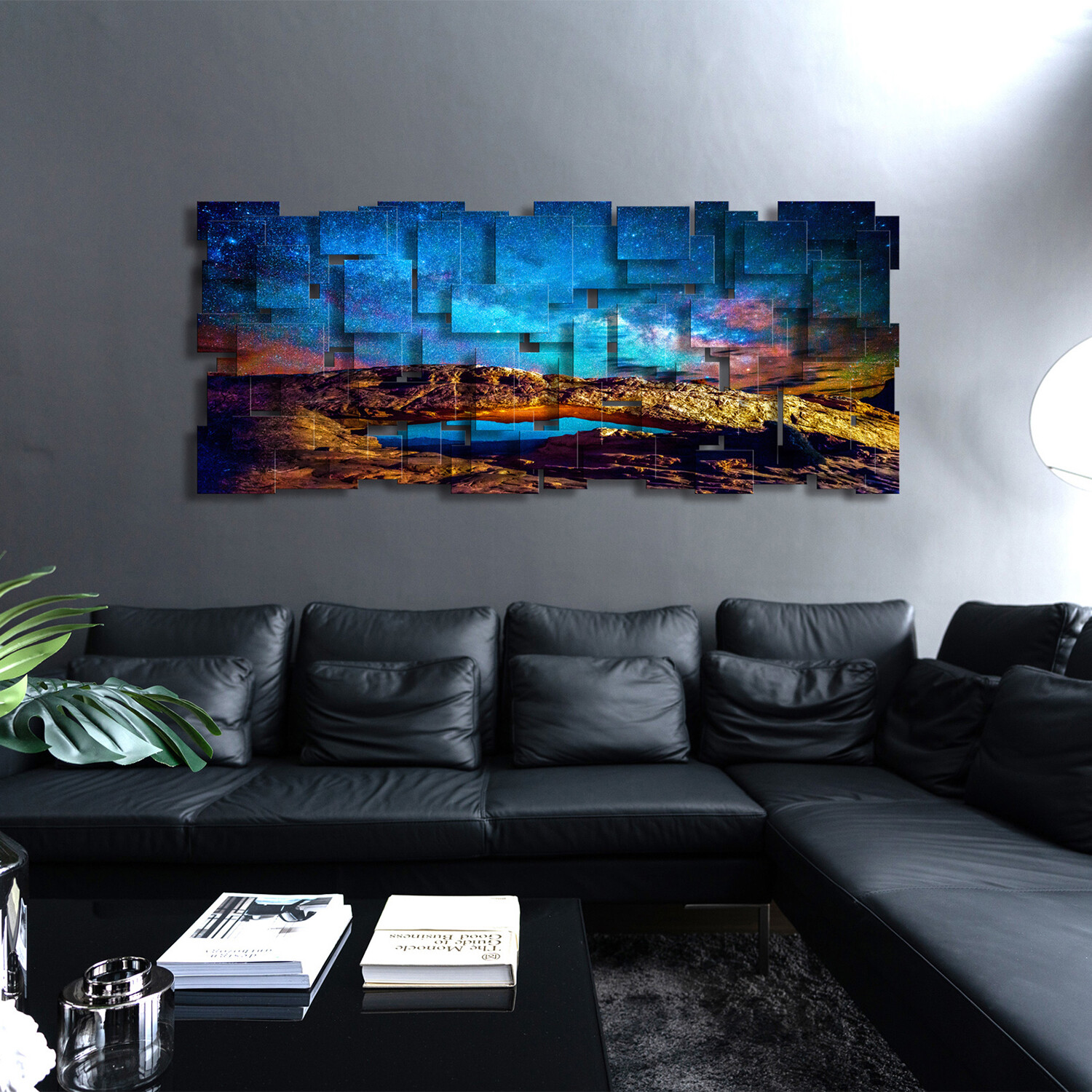 Individual pieces of aluminum composite tiles are hand cut and placed over a welded metal frame on different elevations to create a 3D dynamic in this soothingly harmonious composition. The rear steel structure on the piece is primed and powder coated for durability. Each piece is hand created by the artist in his studio in Los Angeles. The artist draws upon his background in architecture to find the balance and color that mark the unique aesthetic of this wall art.