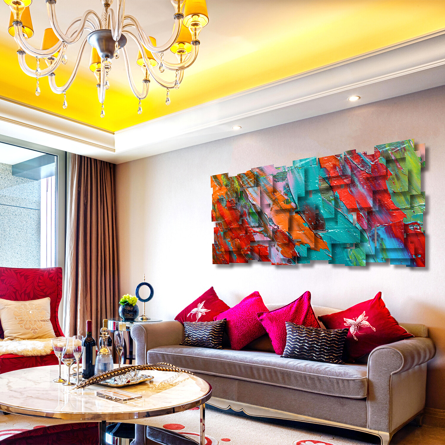 Karo Studios features the artwork of Karo Martirosyan. Influenced by the majestic power of nature and inspired by his travels throughout the world, Karo believes that “Art has the capacity to break the rigidity of daily life.” The metal wall sculpture with its evocative colors and patterns perfectly demonstrates the ethos of Karo’s art.