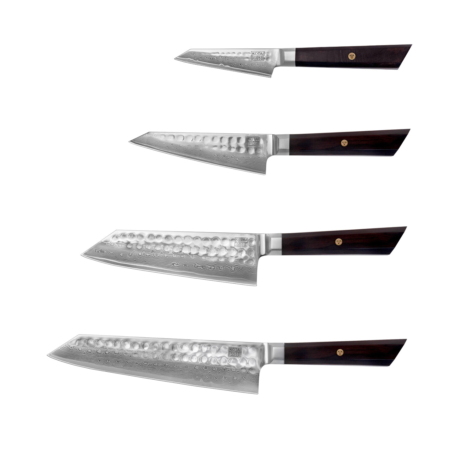 — Includes 4 Knives: Paring (9 cm), Petty (13.5 cm), Santoku (17 cm), Kiritsuke (21 cm)