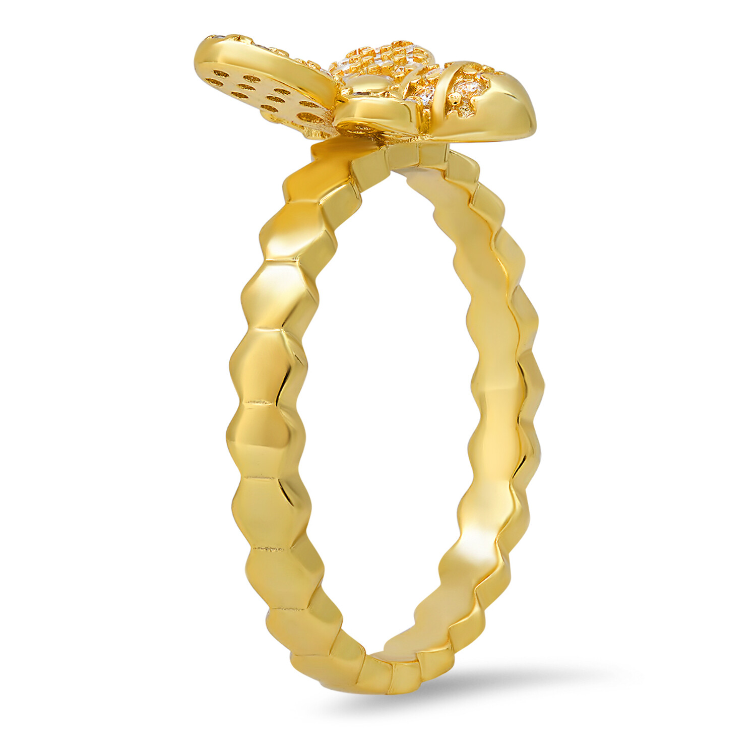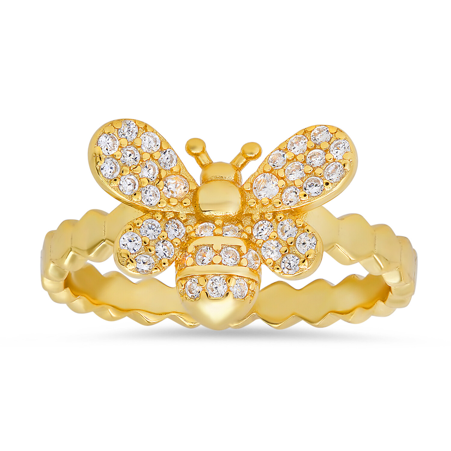 14k Yellow Gold Over Silver CZ Bumble Bee Ring