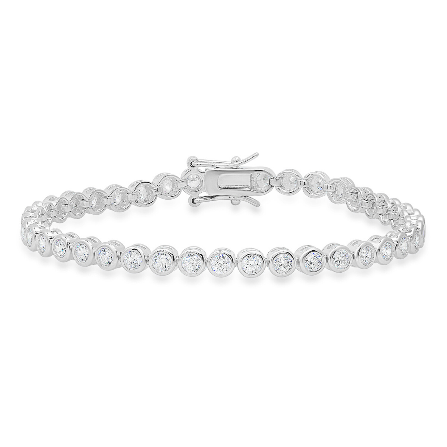 Sterling Silver 7.25" Bezel-set Round-cut CZ Tennis Bracelet