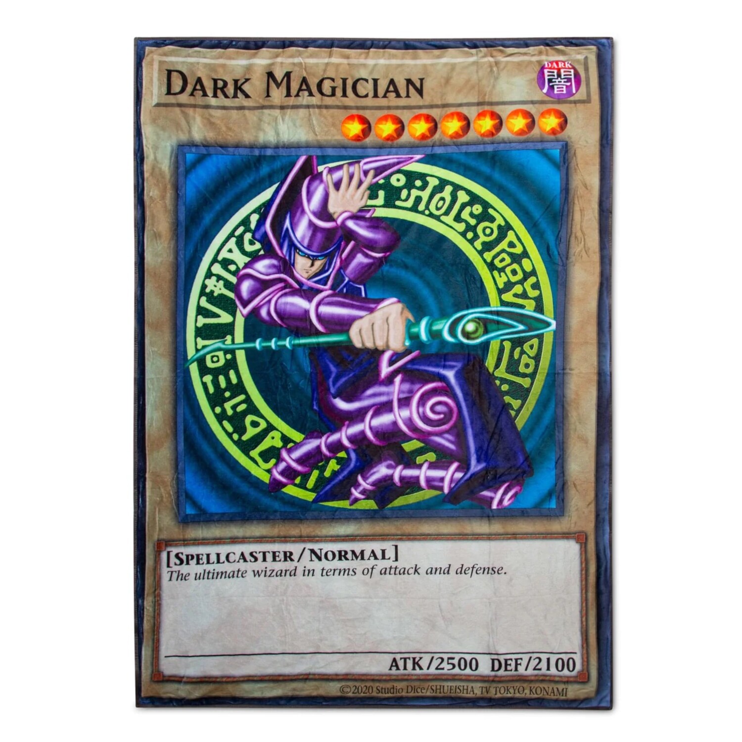 SUMMON THE POWER OF COZY: You don't need to sacrifice Spirit Energy to achieve comfort in your Spell Zone. All you need to do is play this exclusive throw blanket featuring the Dark Magician card from Yu-Gi-Oh!