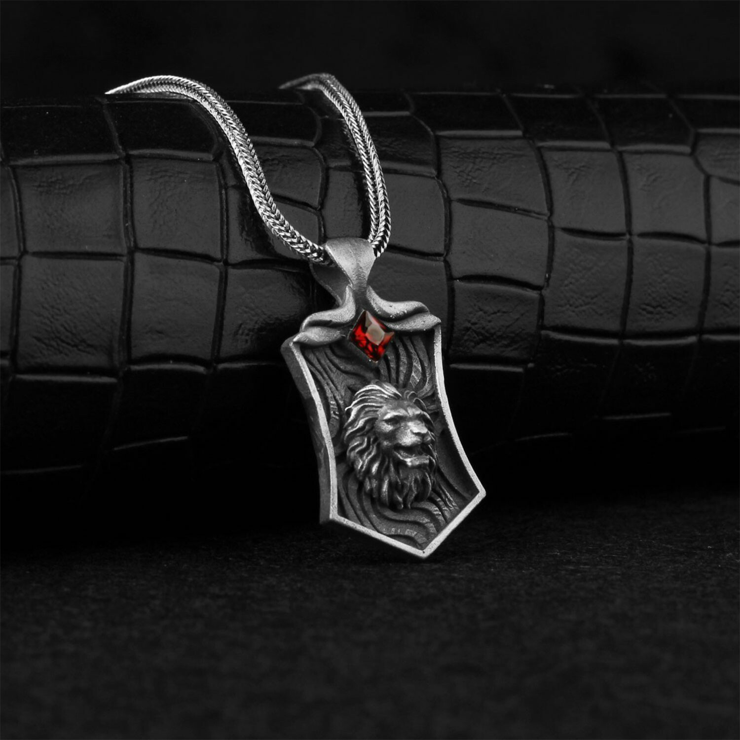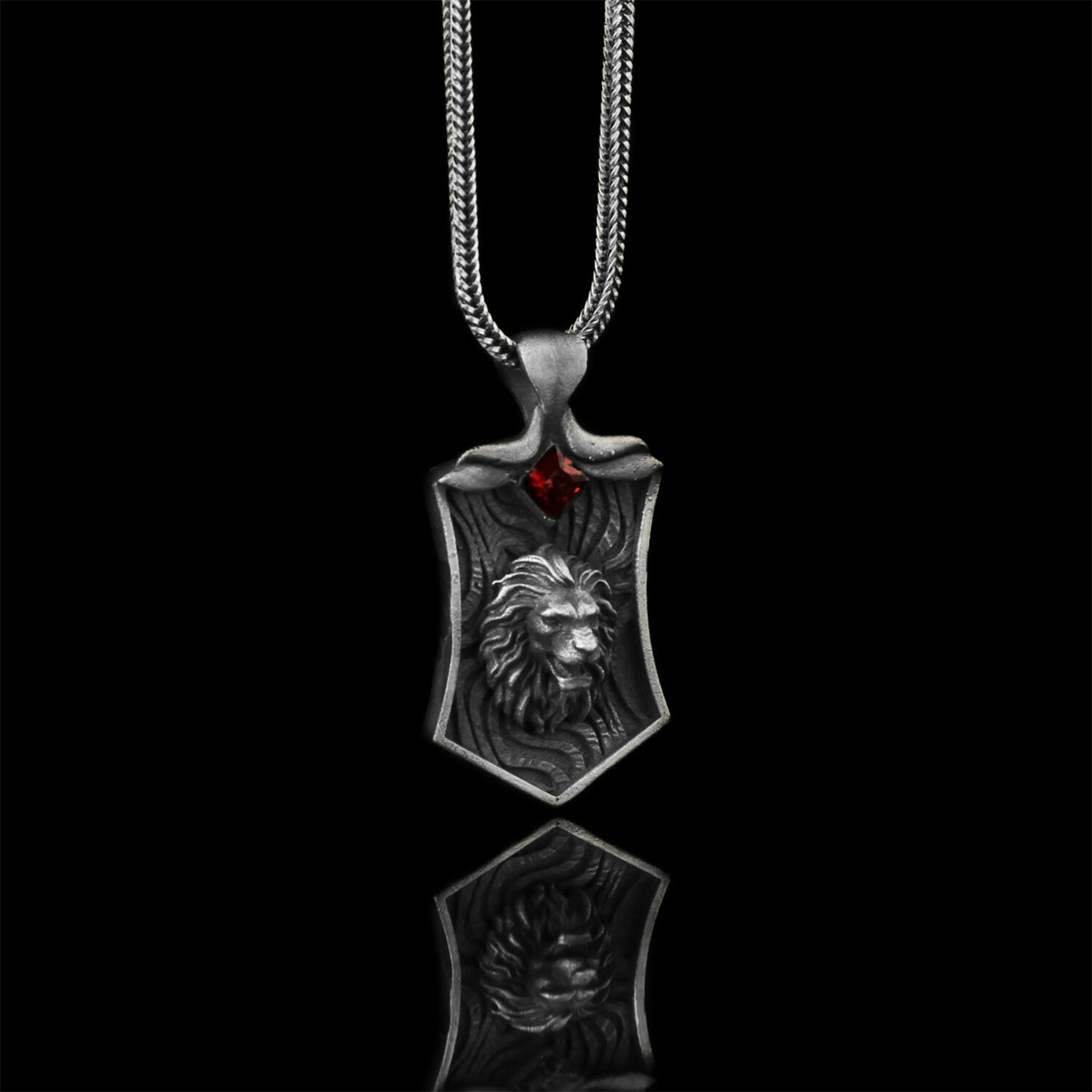 925 Sterling Silver Garnet Stone Lion Head Necklace