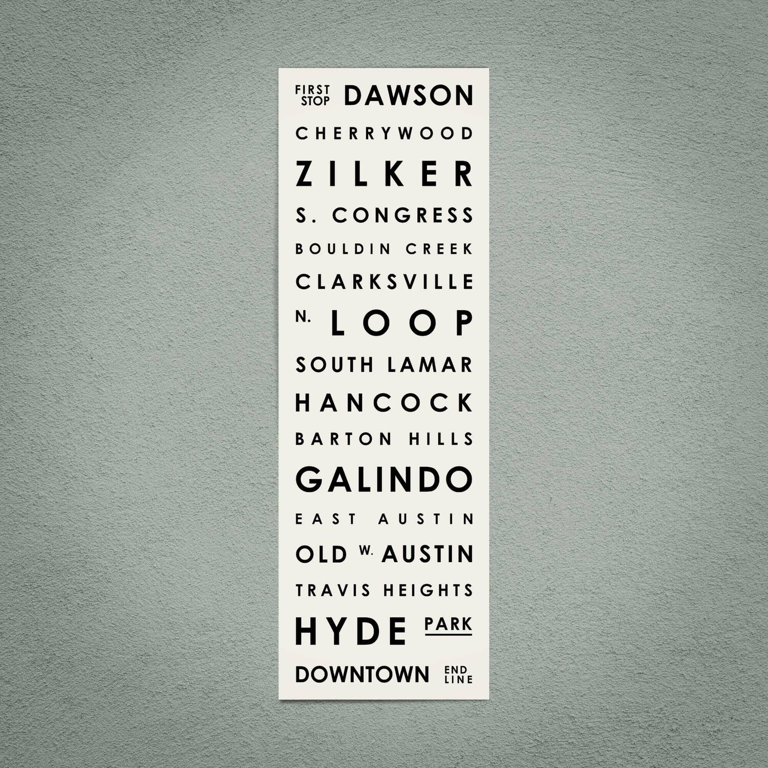 Austin 12" X 36" // Typographical Print