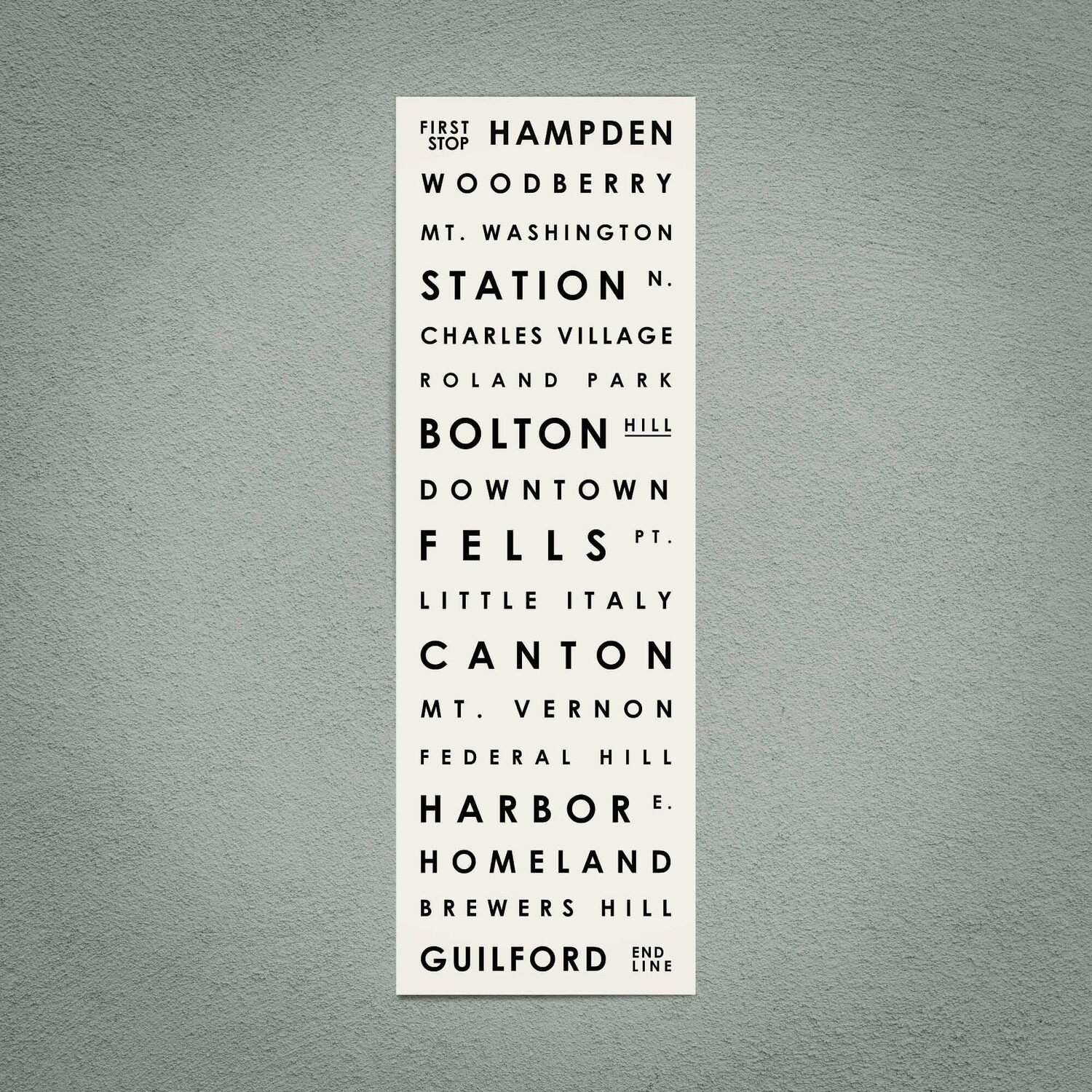 Celebrate your city with this modern typography art print featuring its unique neighborhoods. At 12" x 36", the long, vertical format makes a bold statement, perfect for brightening a hallway, or anchoring a gallery wall.