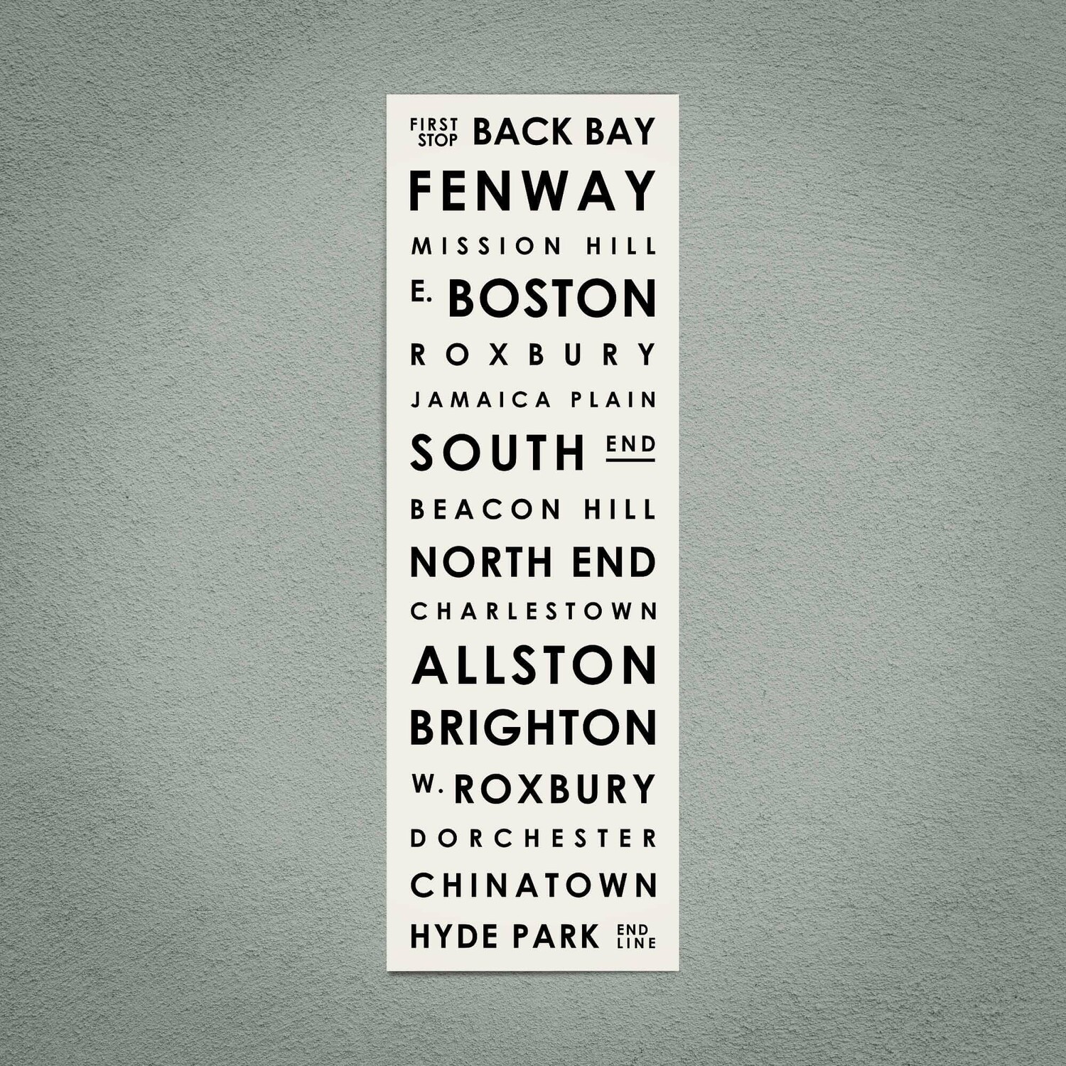 Celebrate your city with this modern typography art print featuring its unique neighborhoods. At 12" x 36", the long, vertical format makes a bold statement, perfect for brightening a hallway, or anchoring a gallery wall.