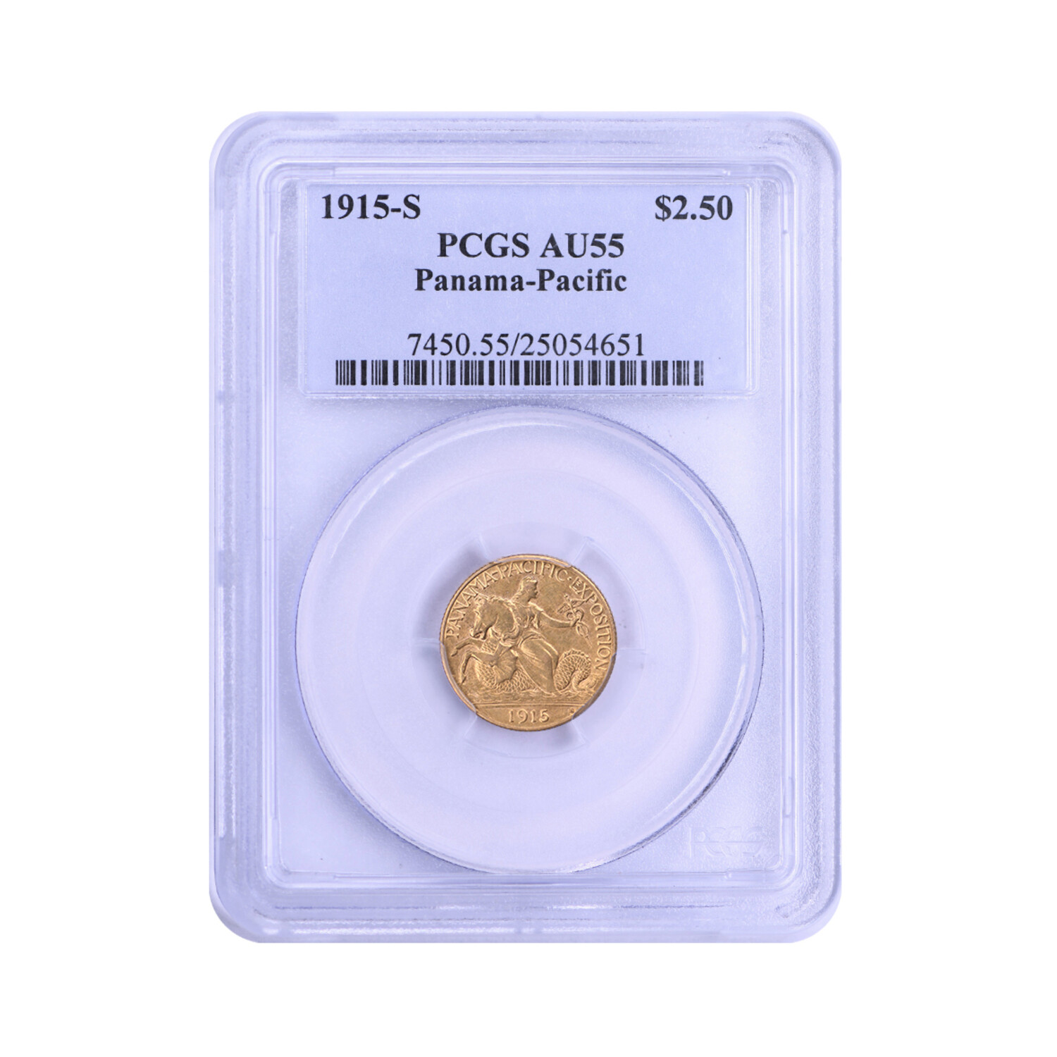 1915-S Panama Pacific $2.50 Gold Commemorative // PCGS Certified AU55 // Deluxe Collector's Pouch
