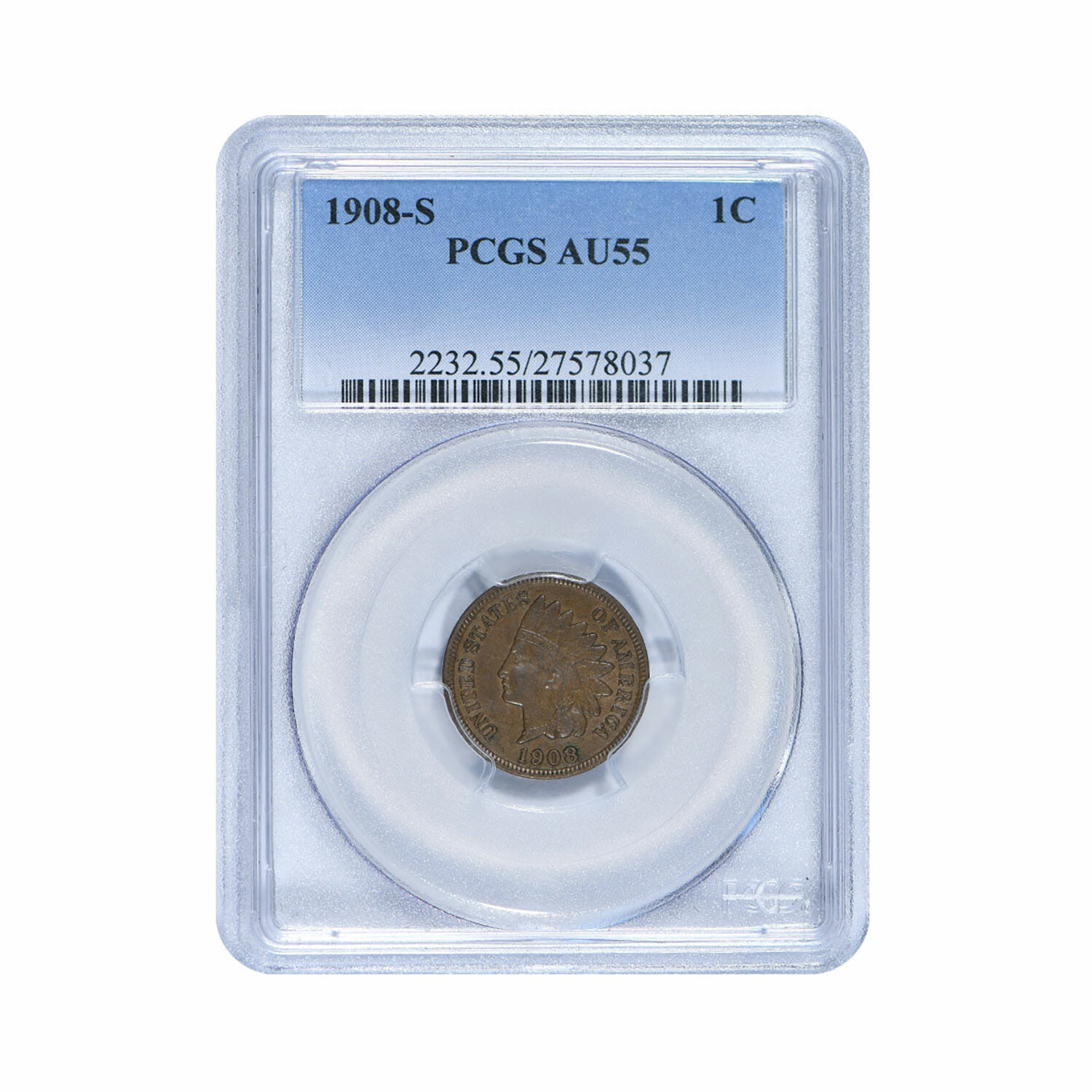 1908-S Indian Head Cent // PCGS Certified AU55 // Deluxe Collector's Pouch