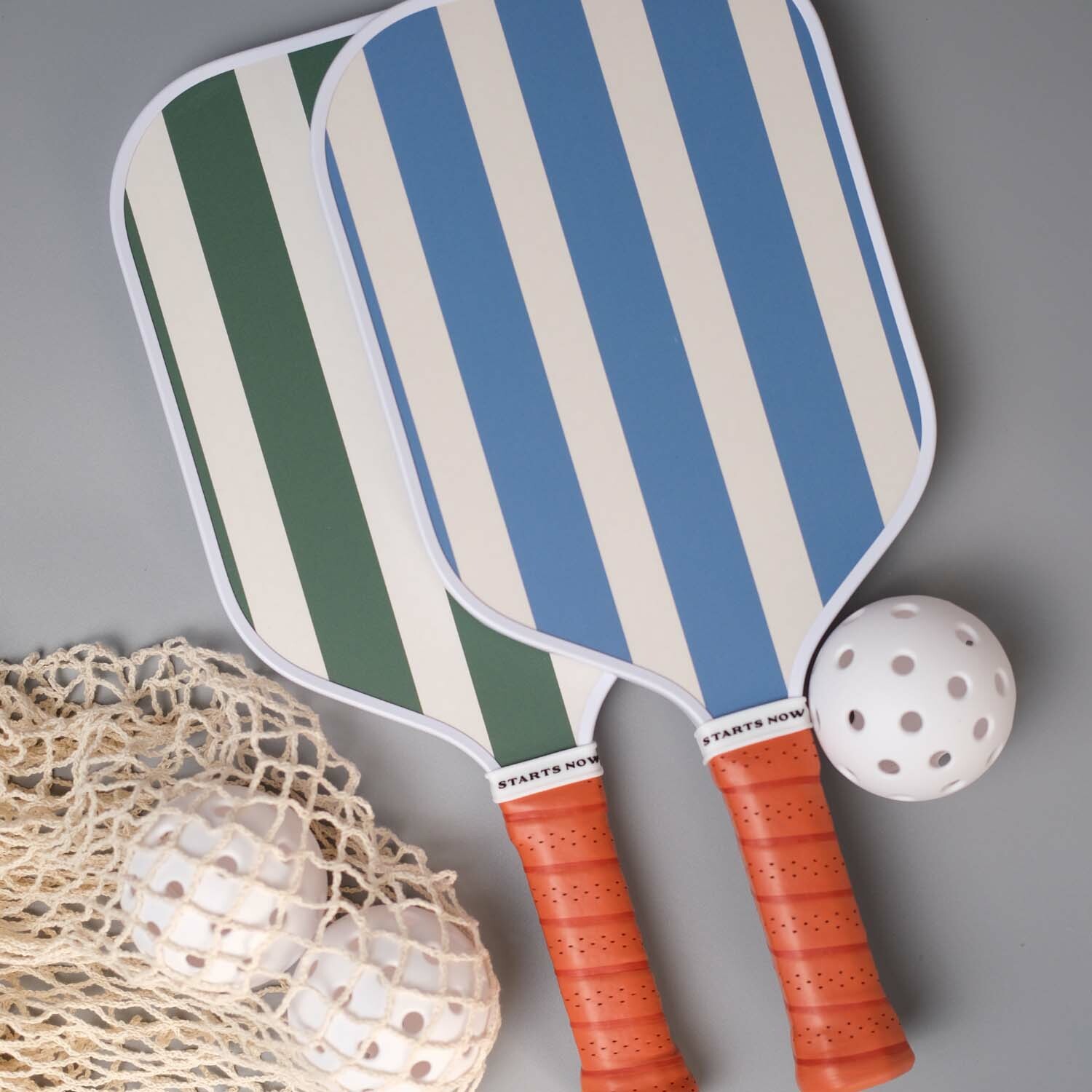This gift ready pickleball set covers everything needed to step on court with confidence and a clean look. It includes two Classic Hamptons paddles in Blue and Green, a box of balls, and a court bag for easy carry. Durable fiberglass faces and a sturdy honeycomb core deliver balanced pop and control, while custom grip details keep hands locked in through long rallies.