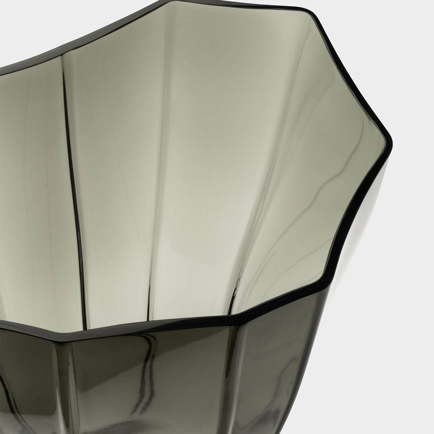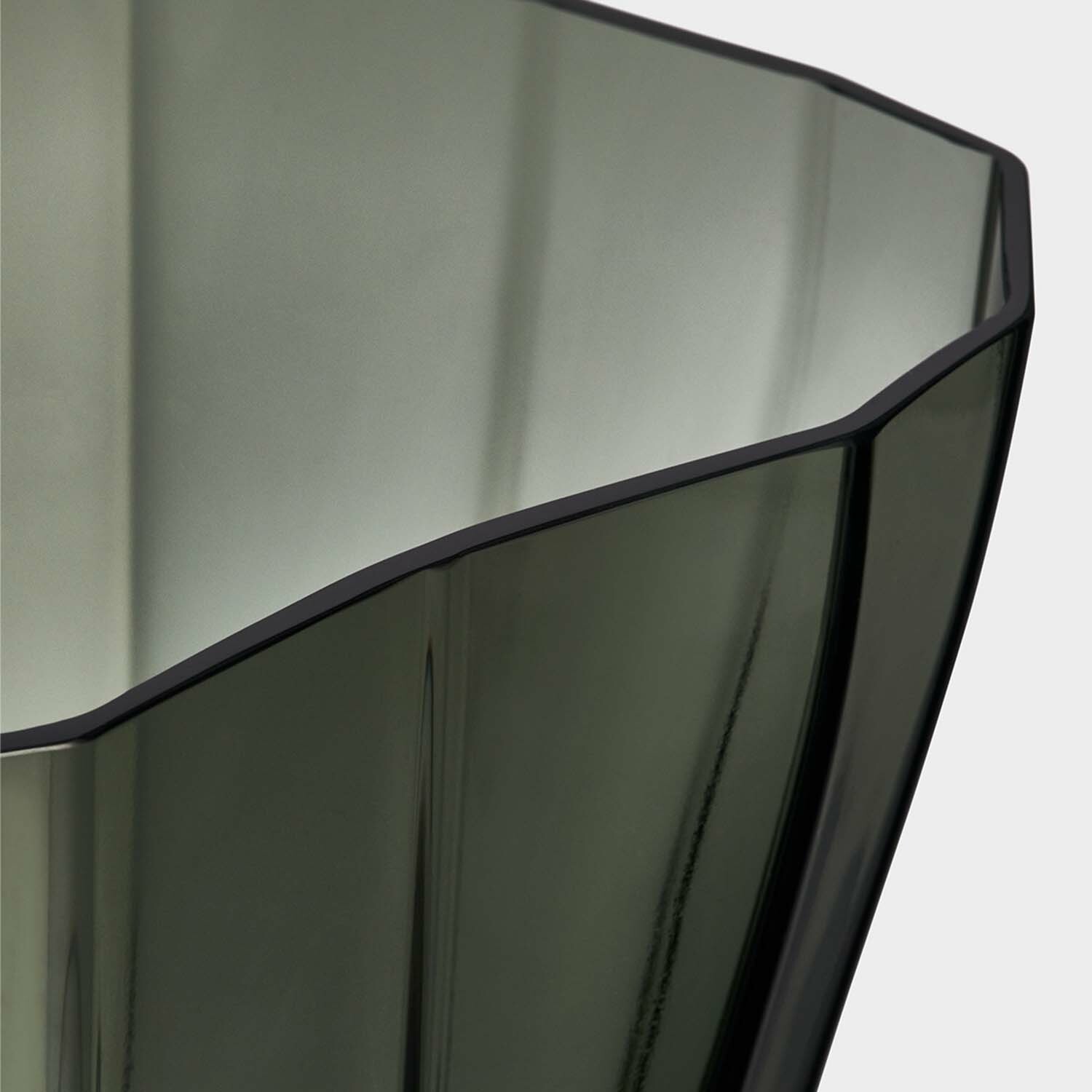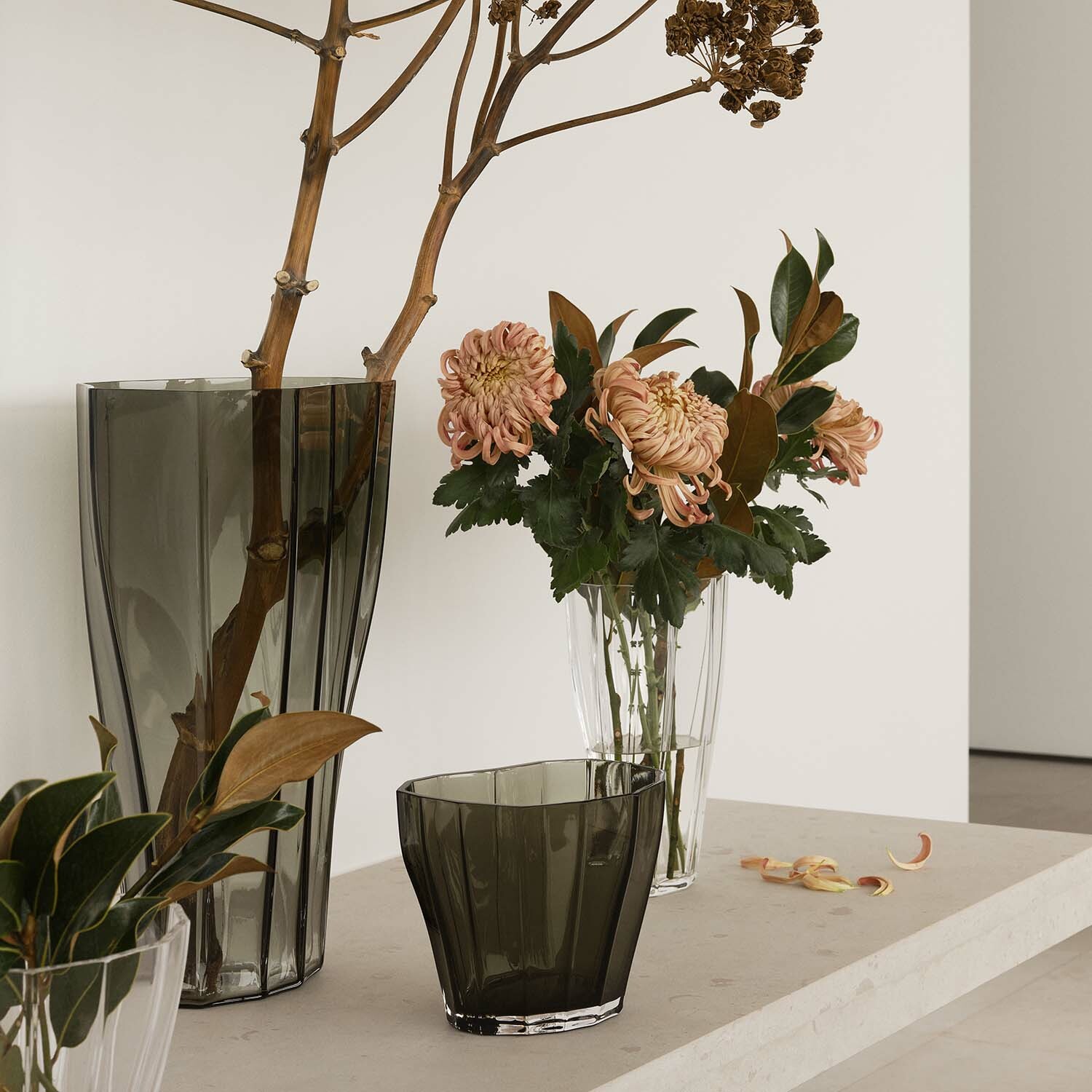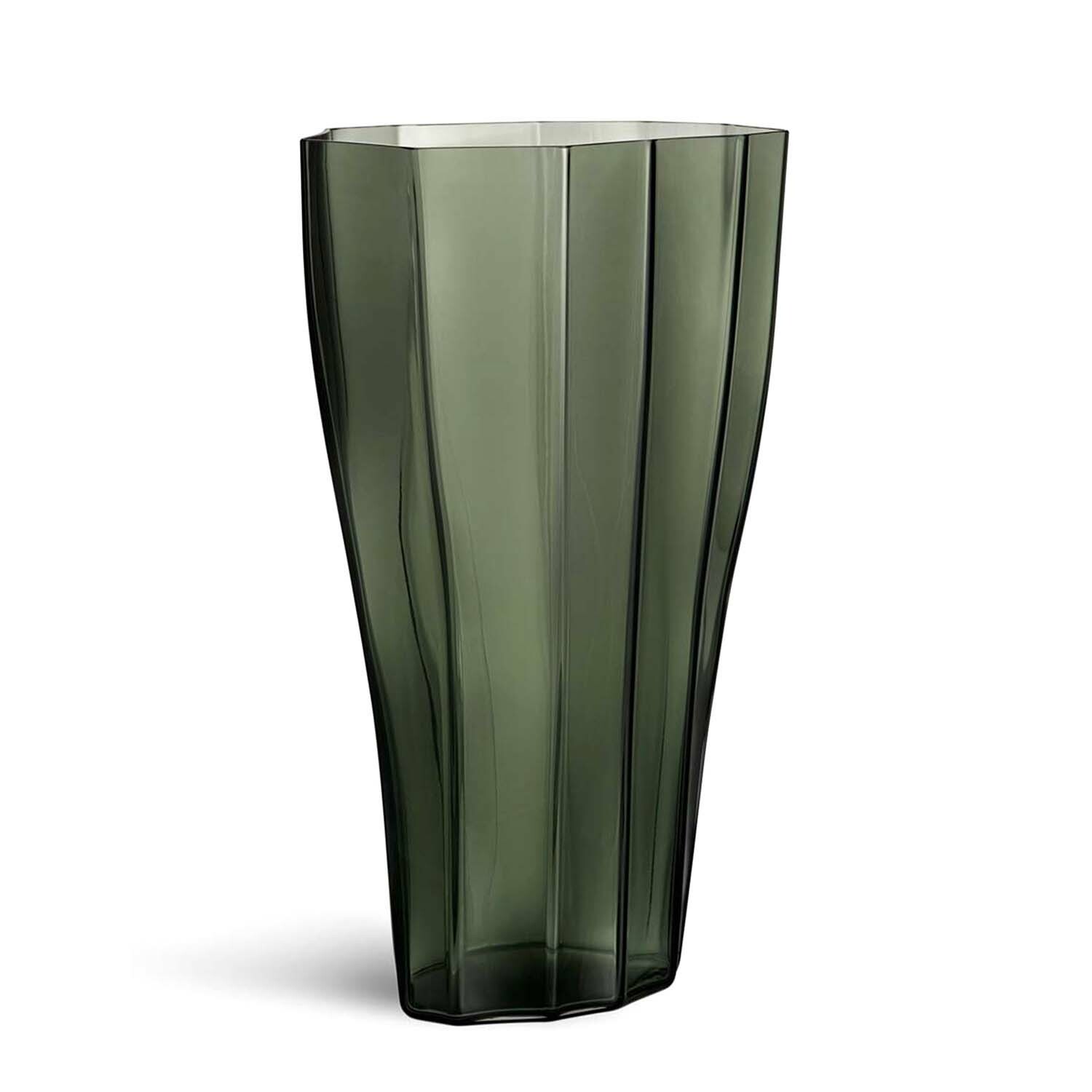 With Reed, Swedish designer Monica Förster shows how to create a sense of organic movement by emphasizing folds. A quiet sway in the solid, moss green glass. The low Reed vase is well-suited for tulips.