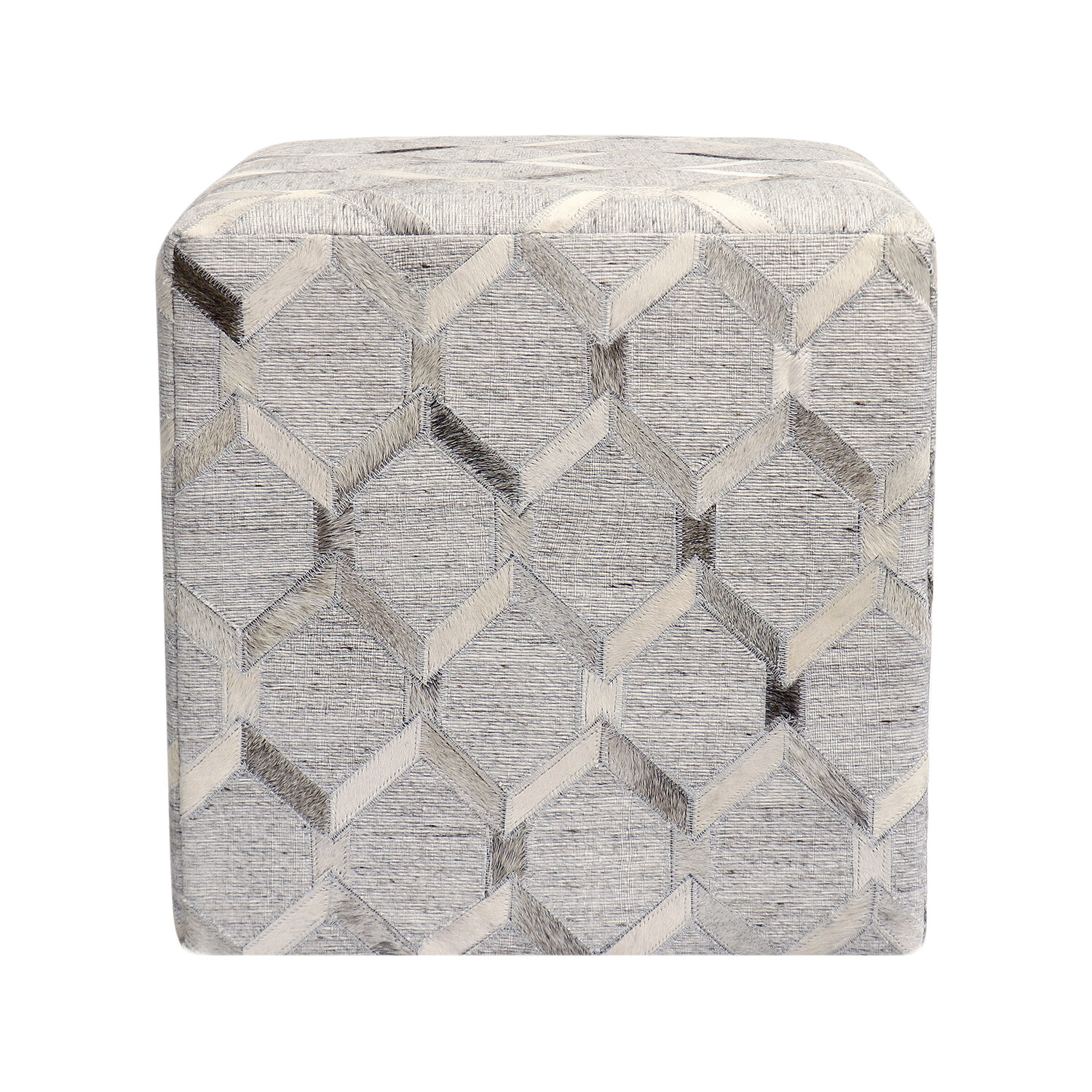 Galaxy Geometric Cowhide Ottoman // Silver