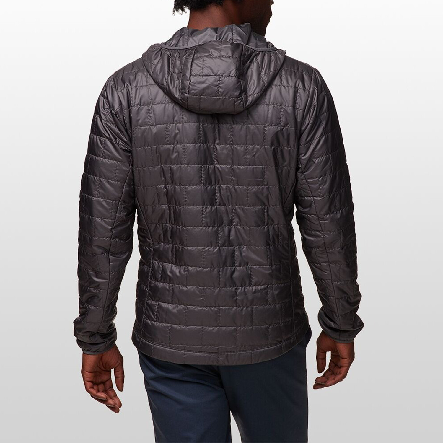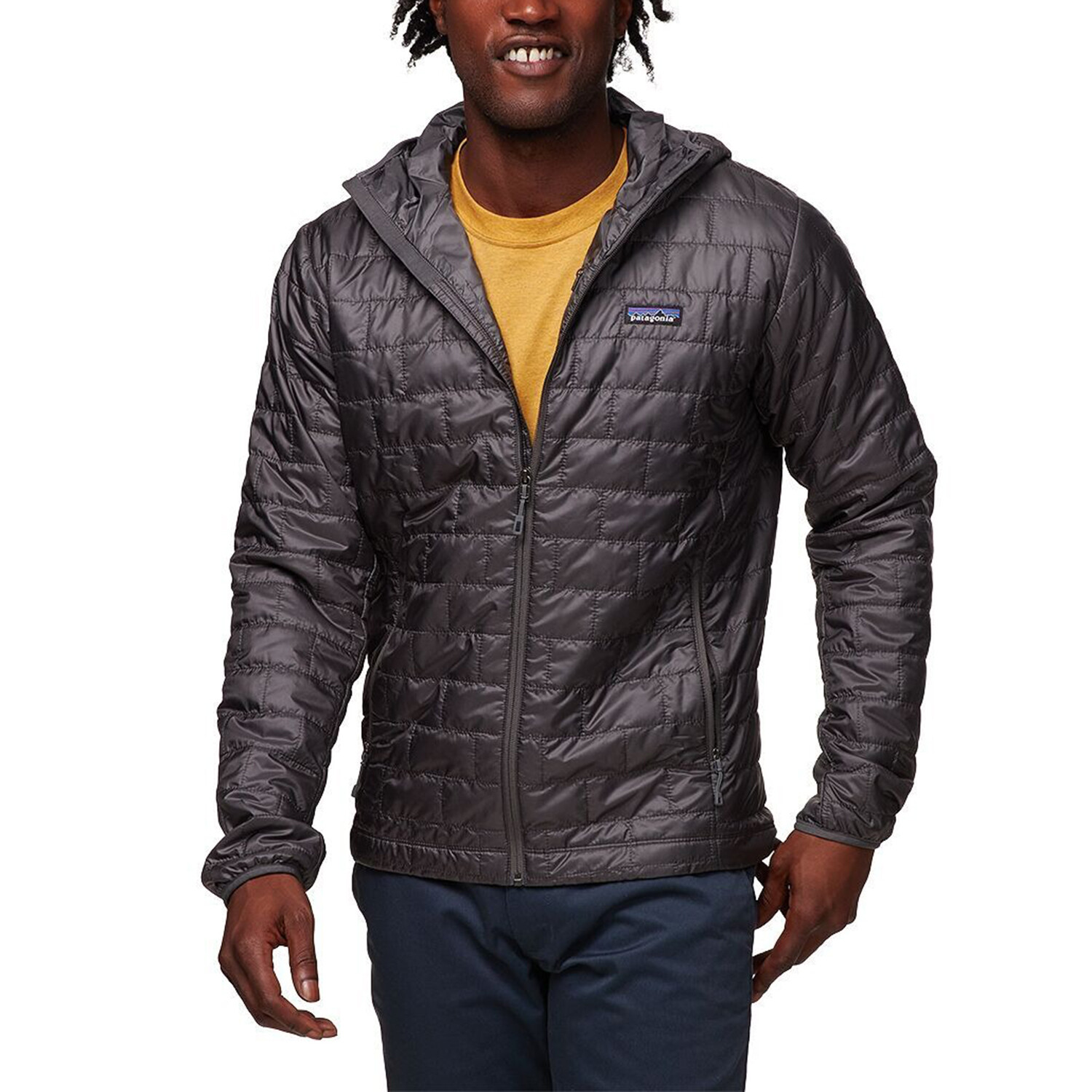 The Patagonia Men's Nano Puff Hooded Insulated Jacket is warm enough to wear as an outer layer on cold days and light enough to function as a midlayer when temps really drop. Its recycled polyester shell is treated with a DWR finish for light weather protection, while 60g of PrimaLoft Gold Eco insulation keeps warmth in—even when wet. It stows neatly in its own chest pocket for easy carry.