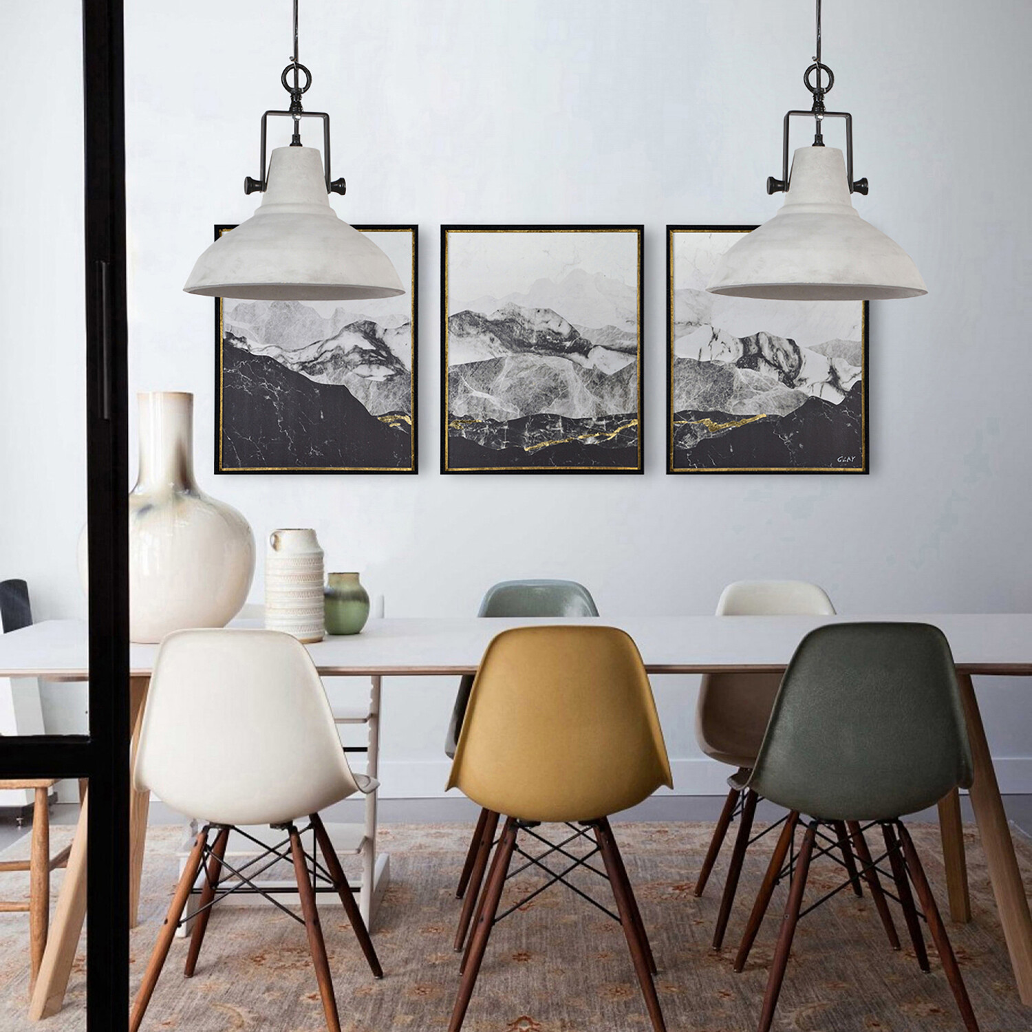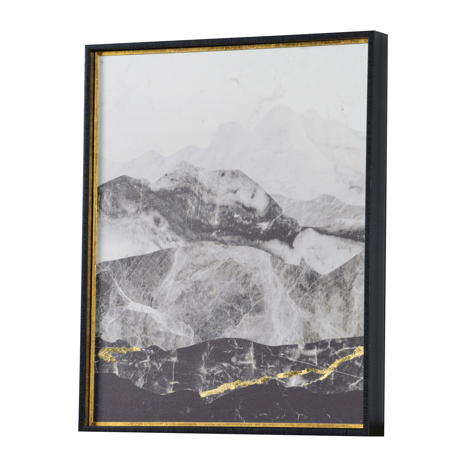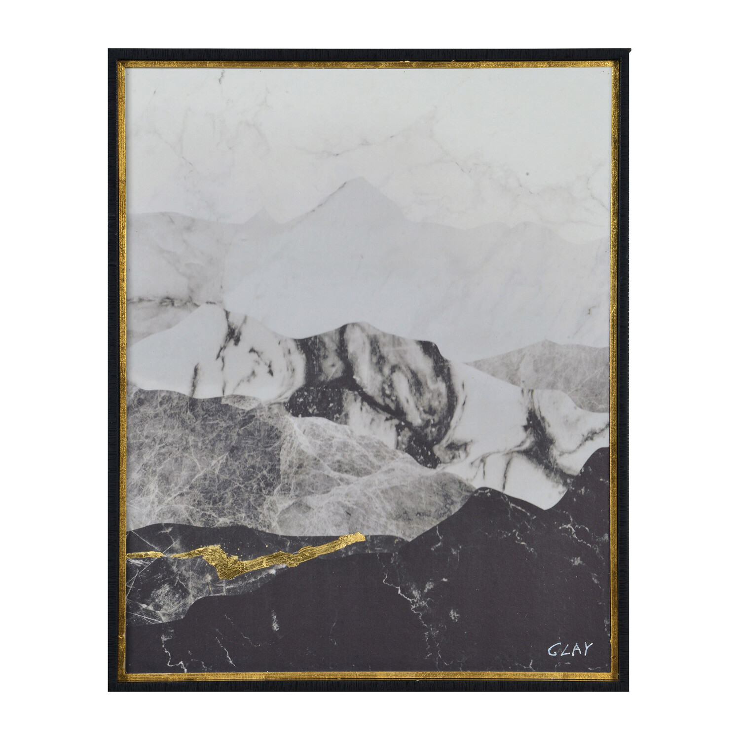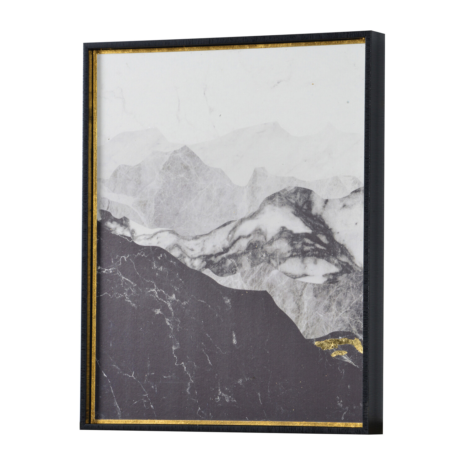 A decorative triptych for the decidedly glam, this set of three fine art prints capture an icy mountainside in graphic black and white. The dramatic mountain range image is split into three, each panel portraying the raw veining of natural stone and rocky landscape in striking detail. An awe-inspiring accent for traditional interiors, the fine art photography series gets a glitzy touch with the help of gold leaf accents.