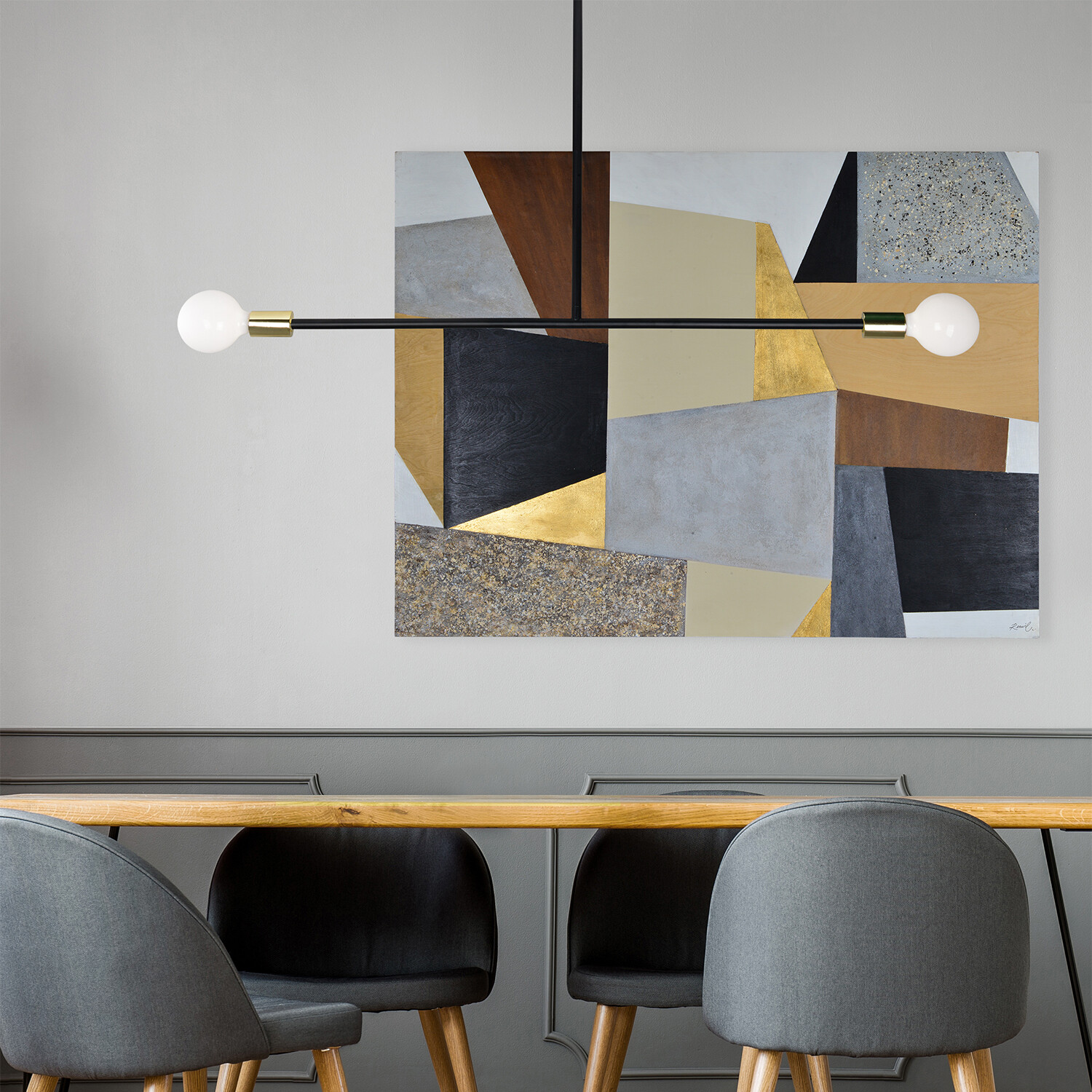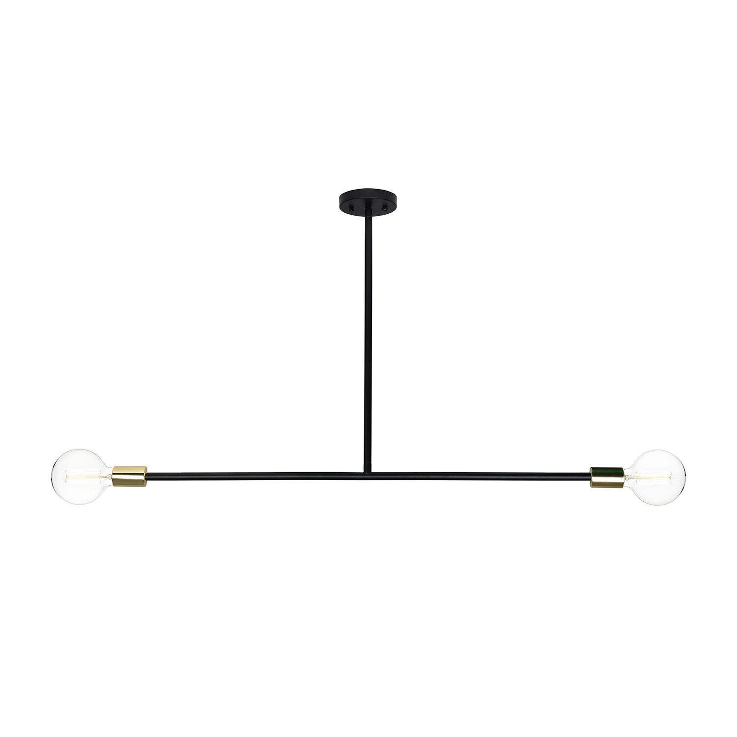 The Scandinavian-inspired forms of this casual ceiling pendant illuminate rooms with a sense of simple style. Gold-plated bulb covers add a glint of glam to the Matte black finish of the metal rod and base. The horizontal format of this decorative light fixture flatters rectangular furniture pieces, surrounding them with light.