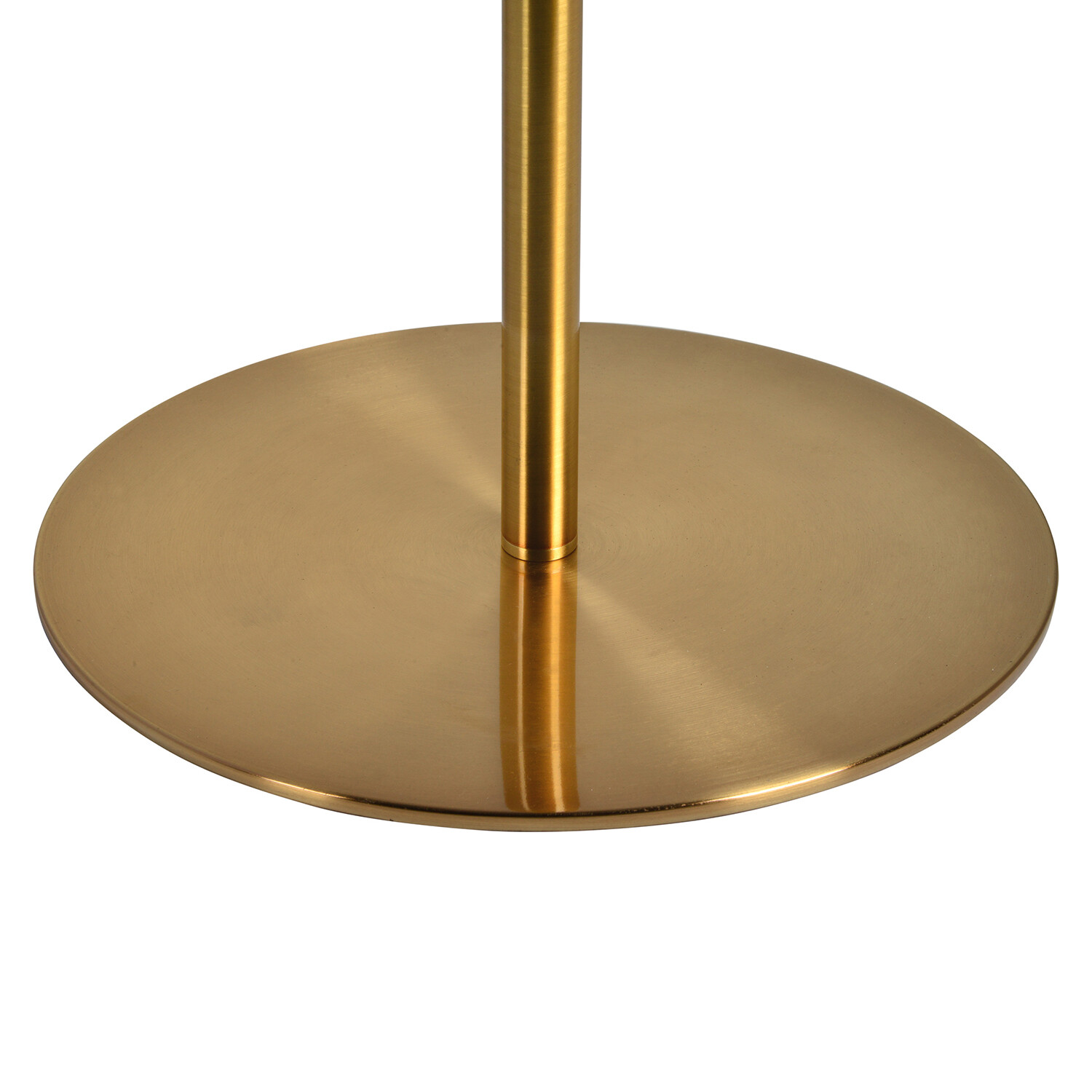 The understated silhouette of this modern floor lamp is simple, yet subtly chic. The modest lines of the lamp base boast a slim iron stem centered by a circular metal stand. Topped with a clean white cotton drum lampshade, the decorative light fixture is plated with an antique brass finish that adds a glamorous element to everyday furnishings.