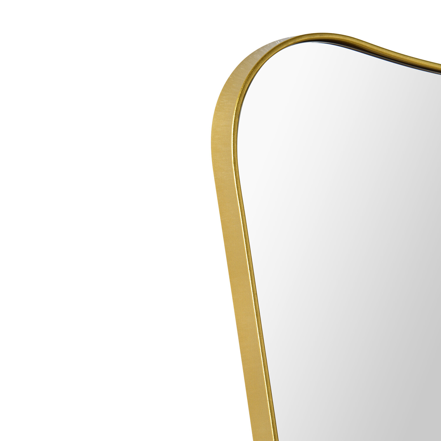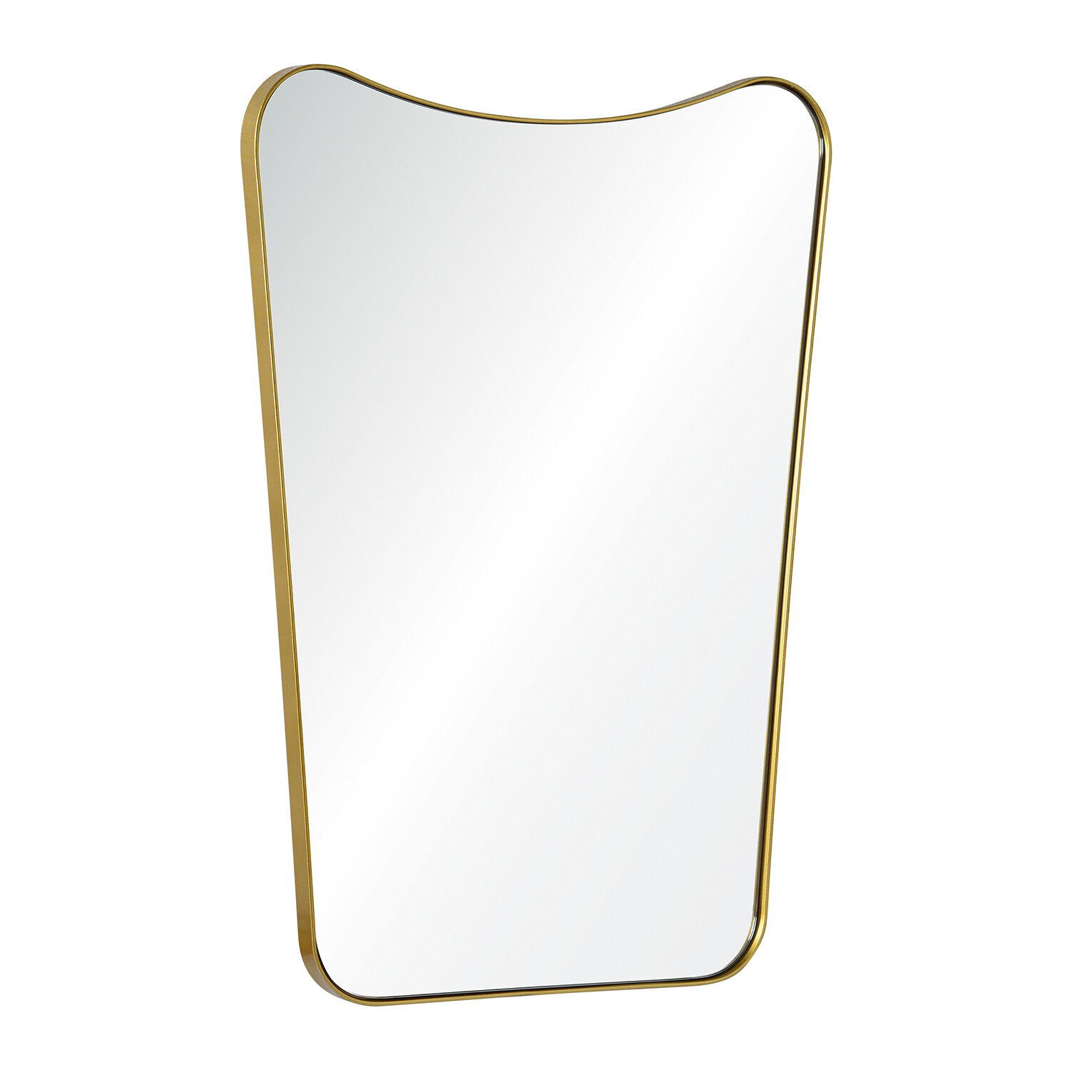 The refined style of this modern wall mirror unifies classic and contemporary décor in a cohesive design statement. The thin profile of the metal frame outlines the looking glass in utter sophistication with a powder-coated gold finish. Hanging in a formal foyer or over a dressing table, the elegant design of this decorative accent mirror determines who truly is the fairest of them all.