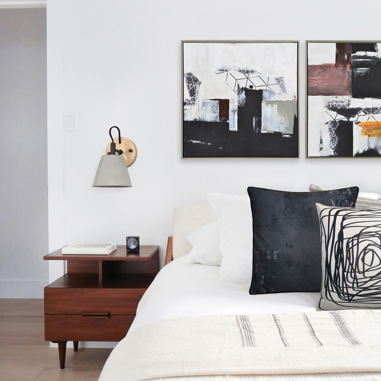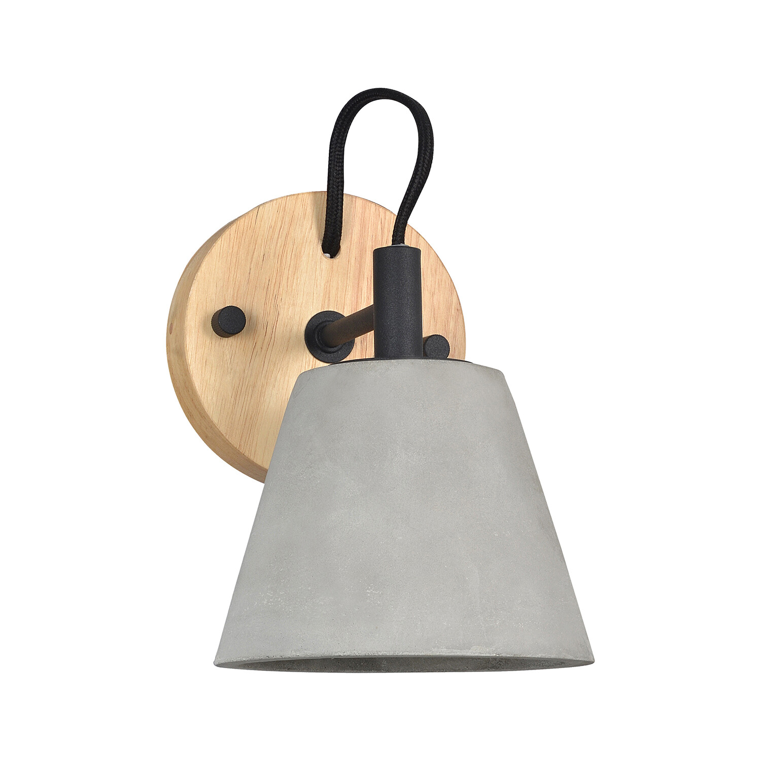 The contemporary bedroom takes on a luxury designer quality with this wall sconce. Coupling traditional features with modern materials, this light contributes to a calming atmosphere. Rubber wood, textured black steel and concrete come together effortlessly to strike the balance of organic and bold design.
