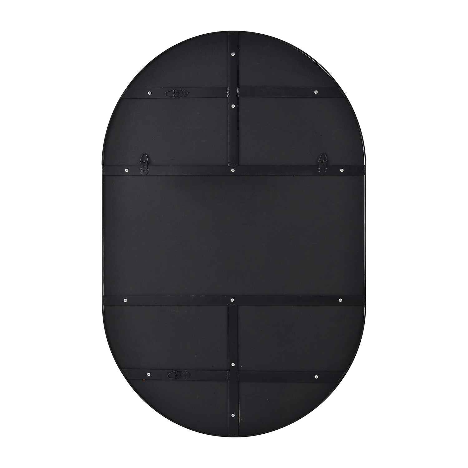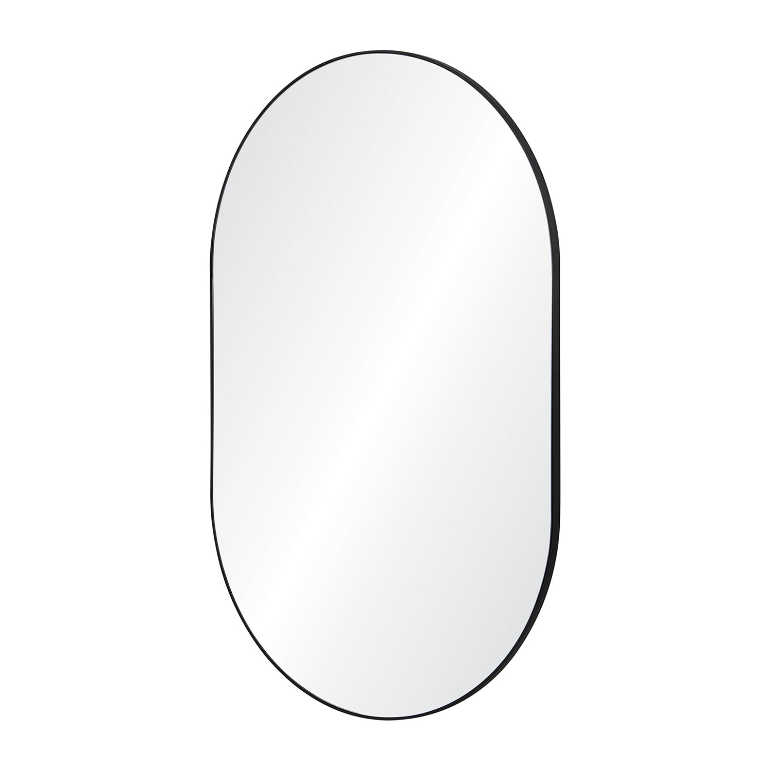 Simple, sleek and high style. This oval-shaped mirror has a minimal black powder coated iron frame. The look is modern, letting the reflection take center-stage.