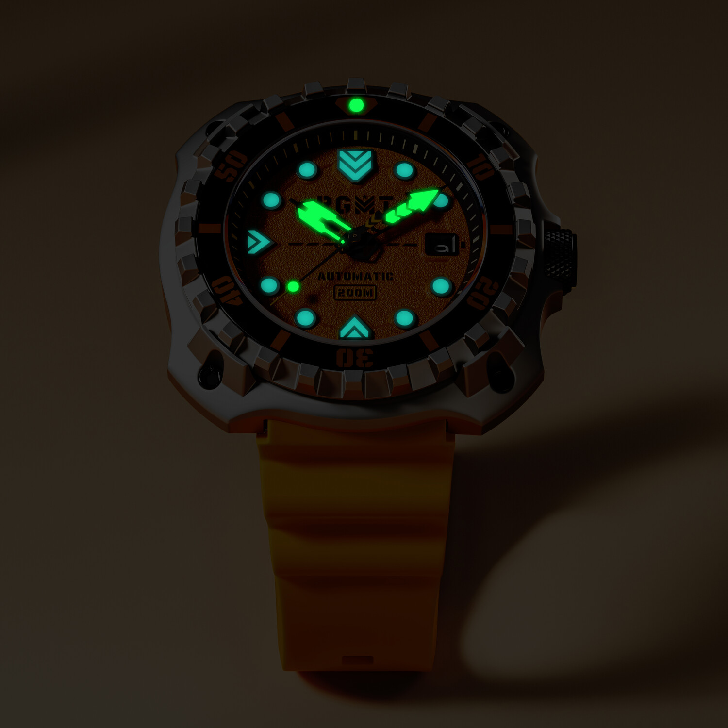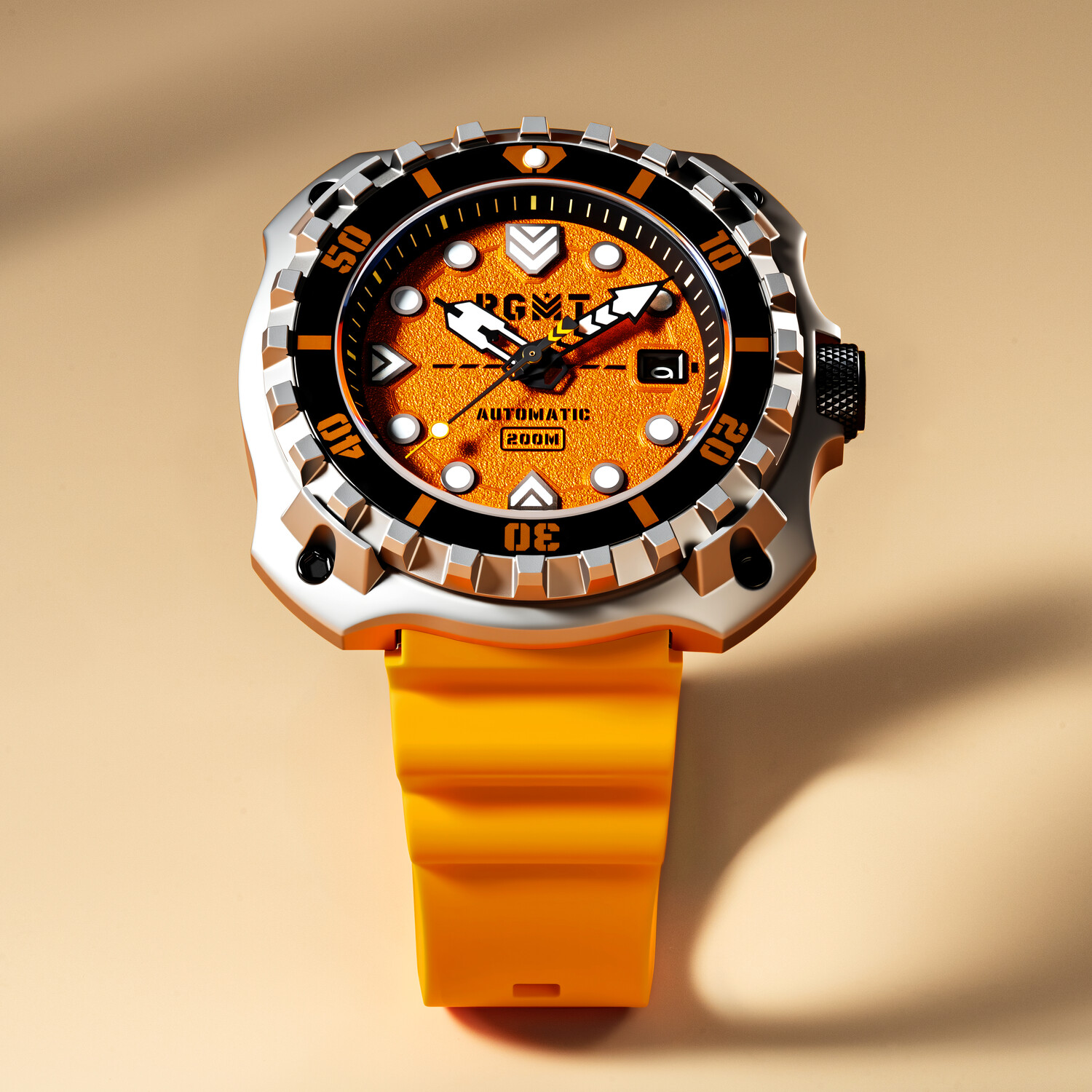 MOVEMENT: M-SII-NH35-D3BKW CASE MATERIAL: STAINLESS STEEL CASE DIAMETER (MM):48 CASE SHAPE: ROUND CASE COLOR: STAINLESS STEEL DIAL COLOR: YELLOW BAND: SILICONE STRAP BAND COLOR: YELLOW WATER RESISTANCE: 20 ATM INCLUDED: -RG-IFCARD-01 FULL PACK WITH RG-TC