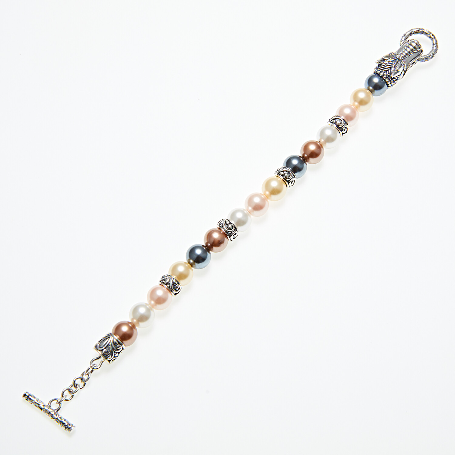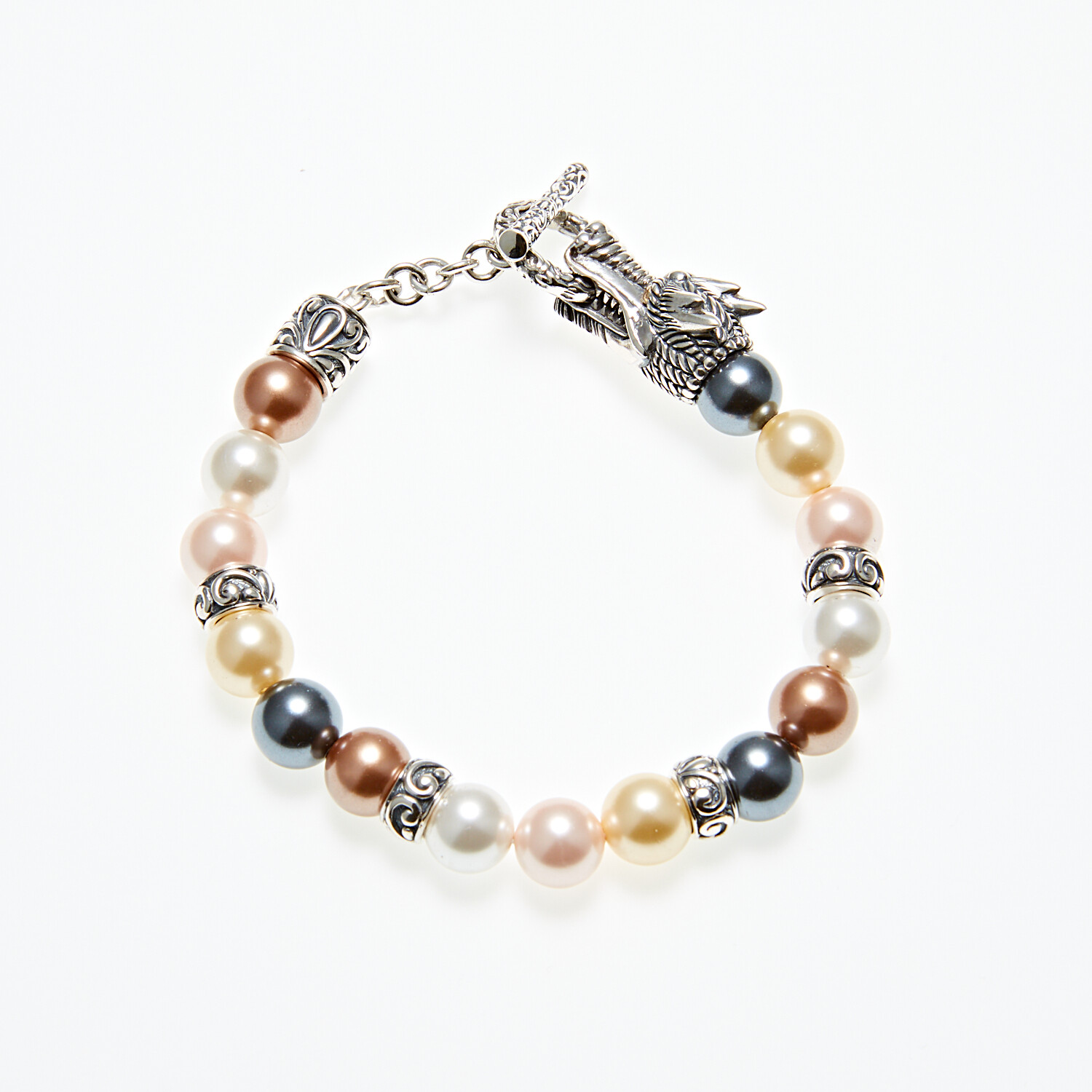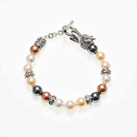 Sterling Silver + 18K Dragon Head Shell Pearl Bracelet // 7" // Multicolored