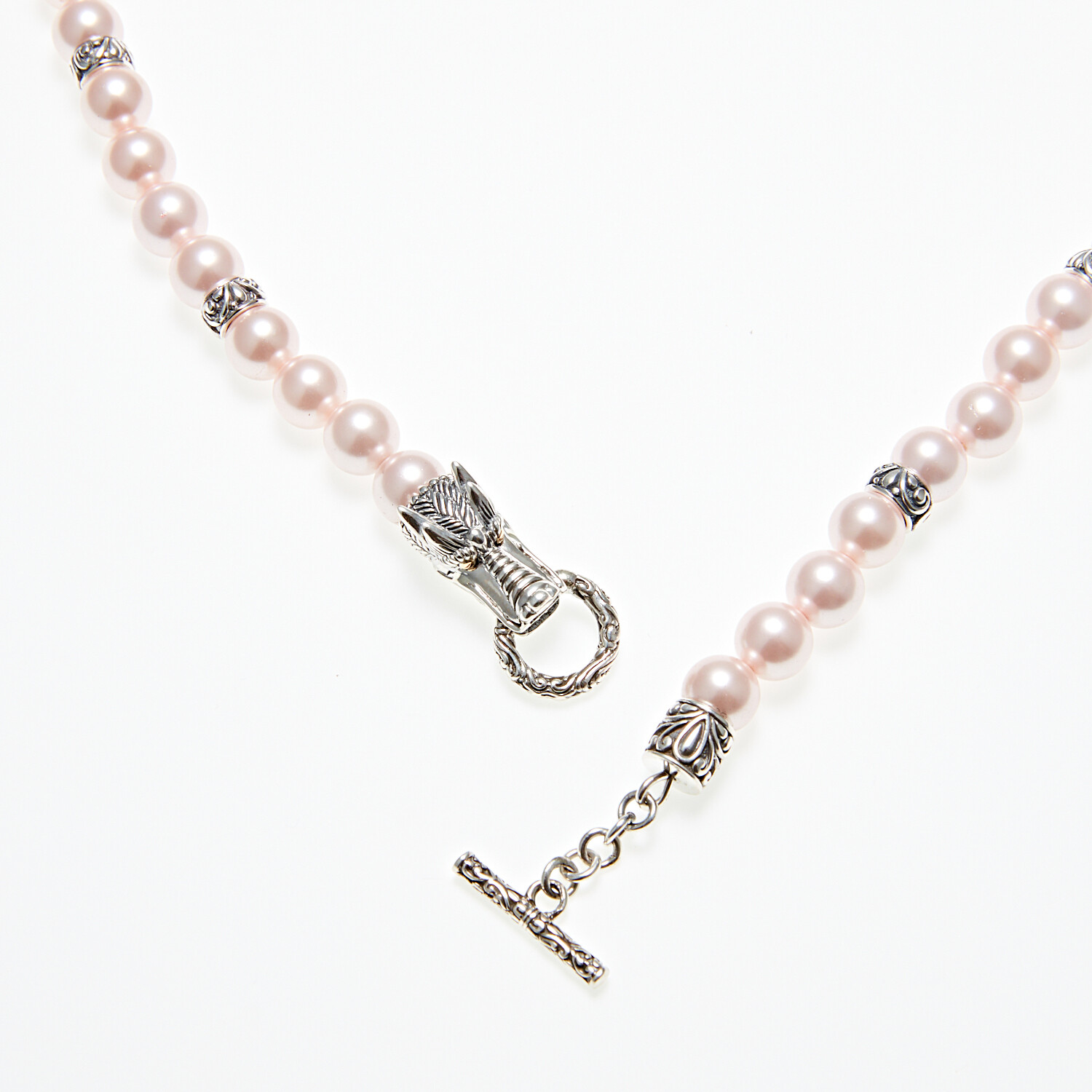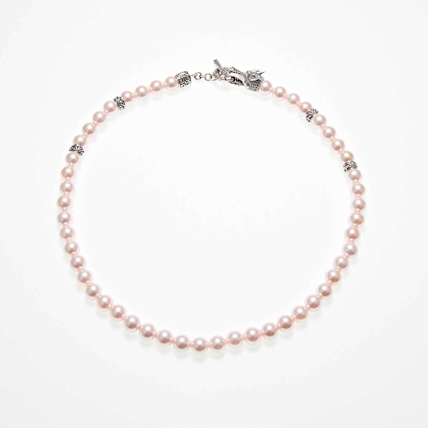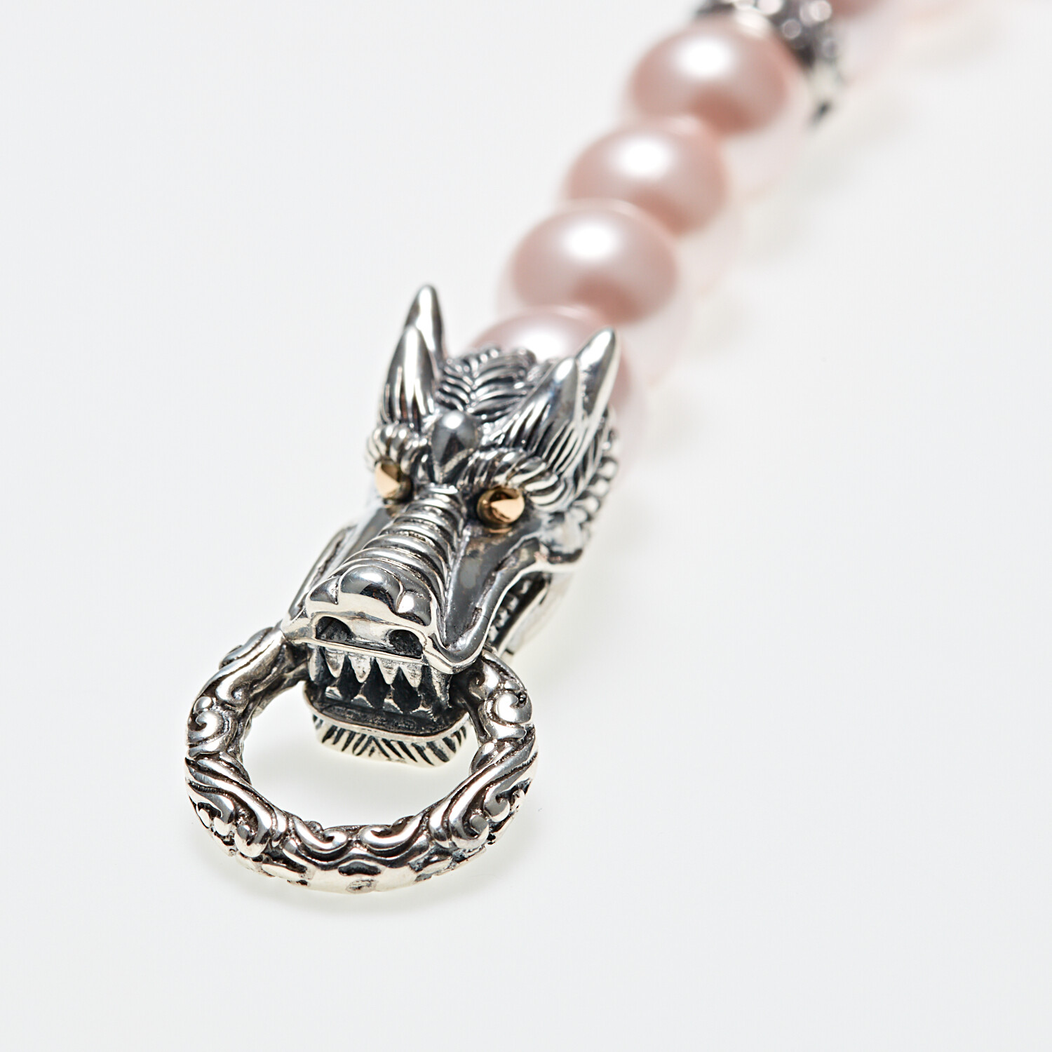 Sterling Silver + 18K Dragon Head Shell Pearl Necklace // 18" // Pink