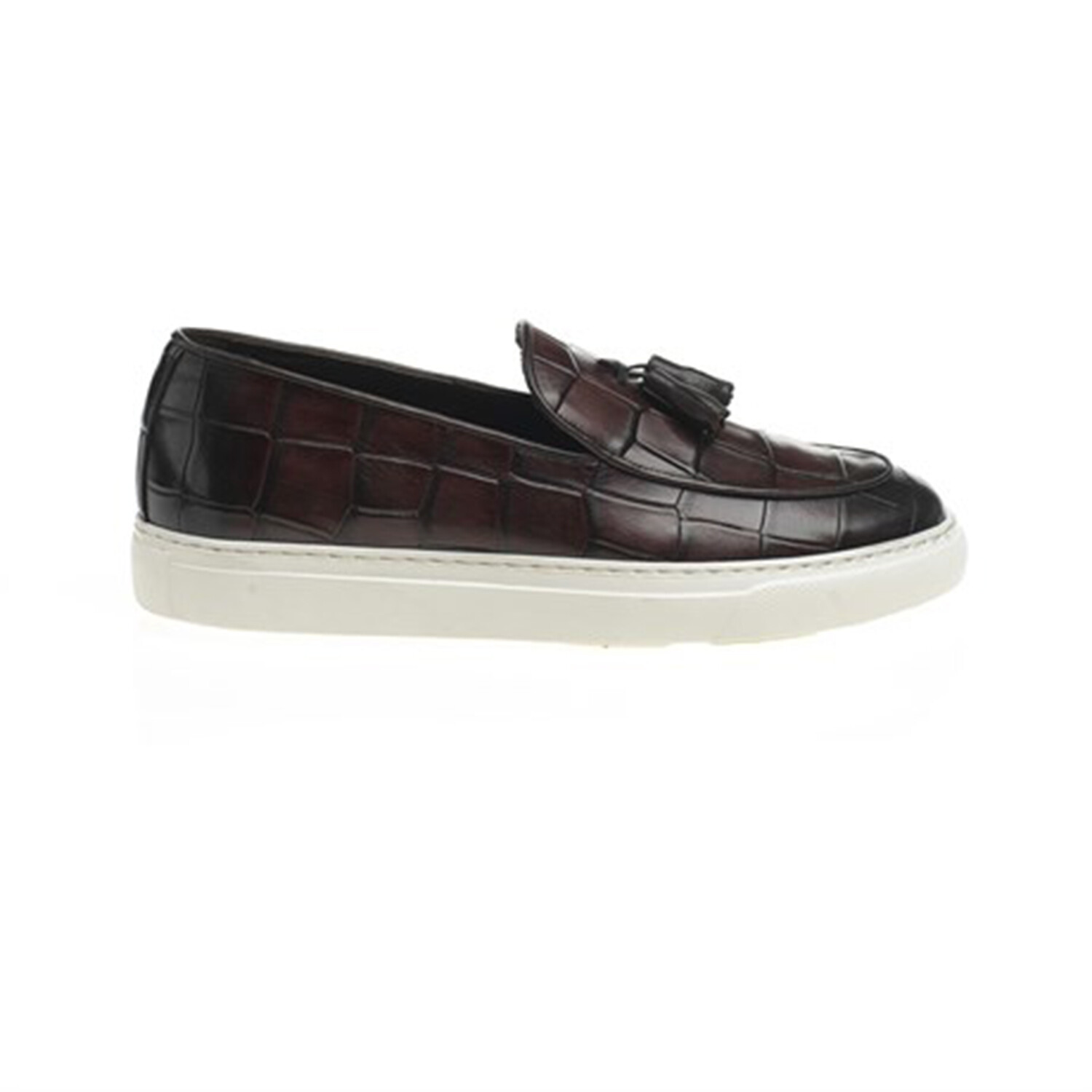 Owen Tassel Crocodile Textured Sneakers // Brown