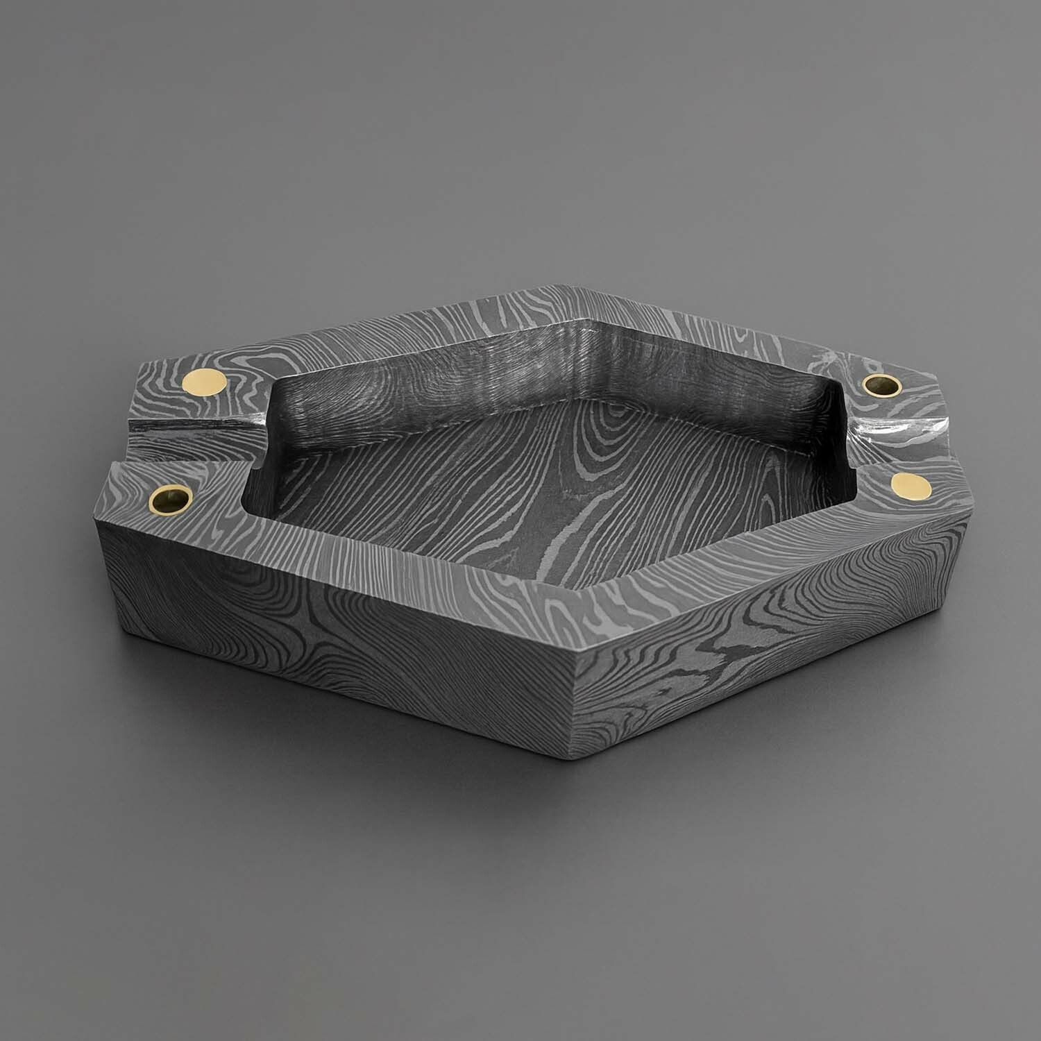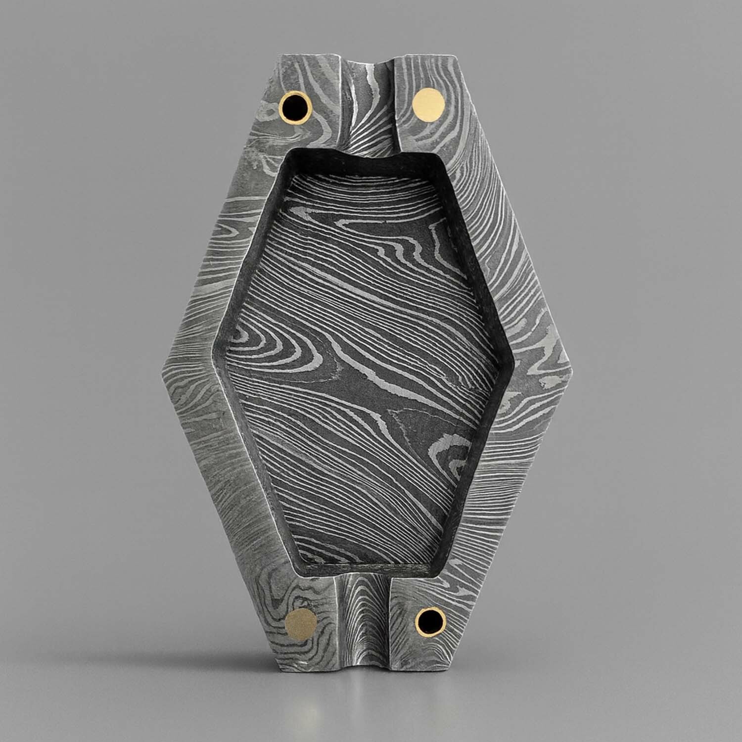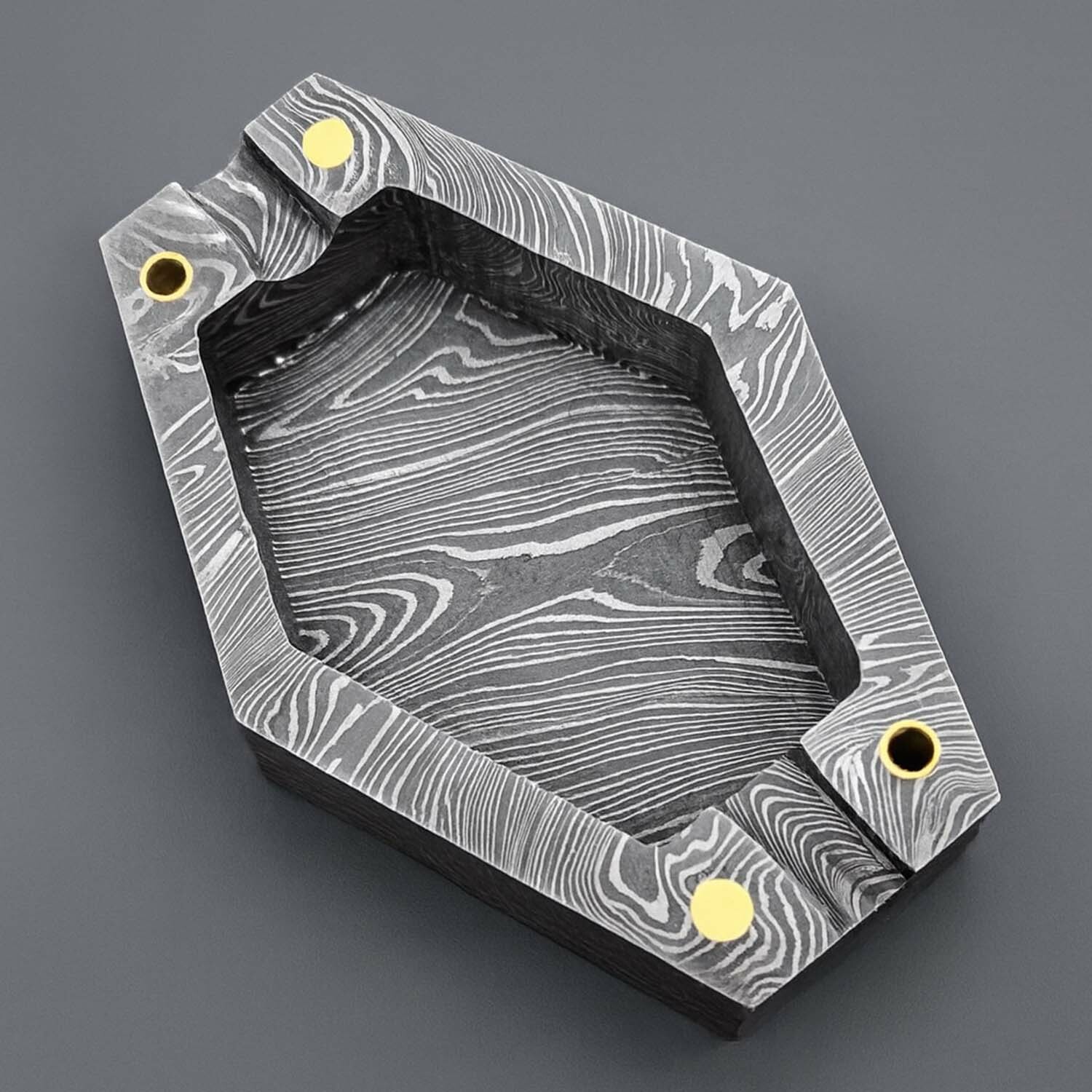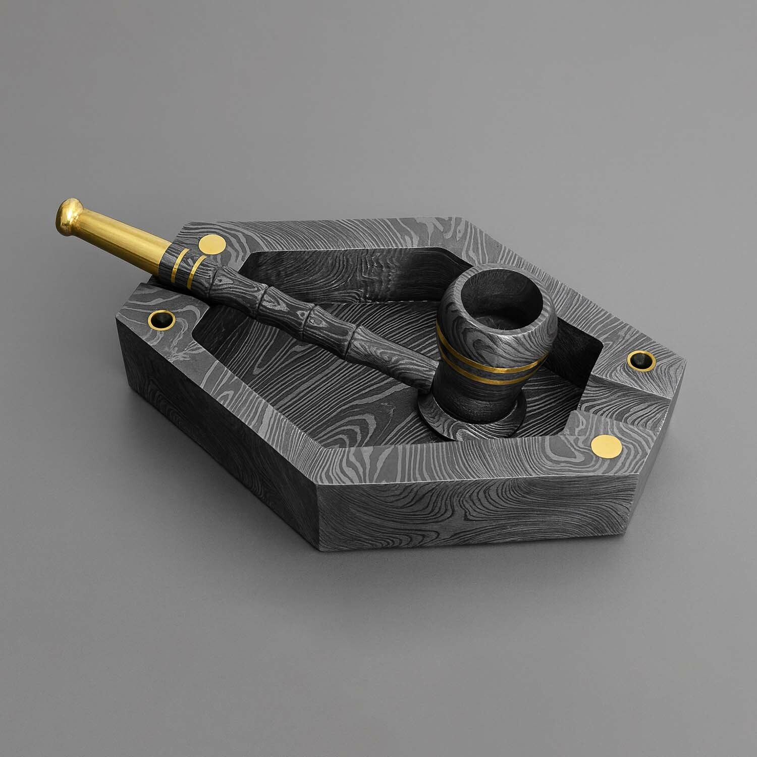 Crafted from striking Damascus steel, these one-of-a-kind ashtrays from Bob’s Twisted Knives bring serious weight and edge to your smoking setup. Each piece in the Smoke Hub series features bold silhouettes, carved rests, and layered patterns forged into the metal itself. Choose from round, square, or sculptural designs—some with brass accents—all made to impress whether you're lighting up solo or hosting a smoke session.