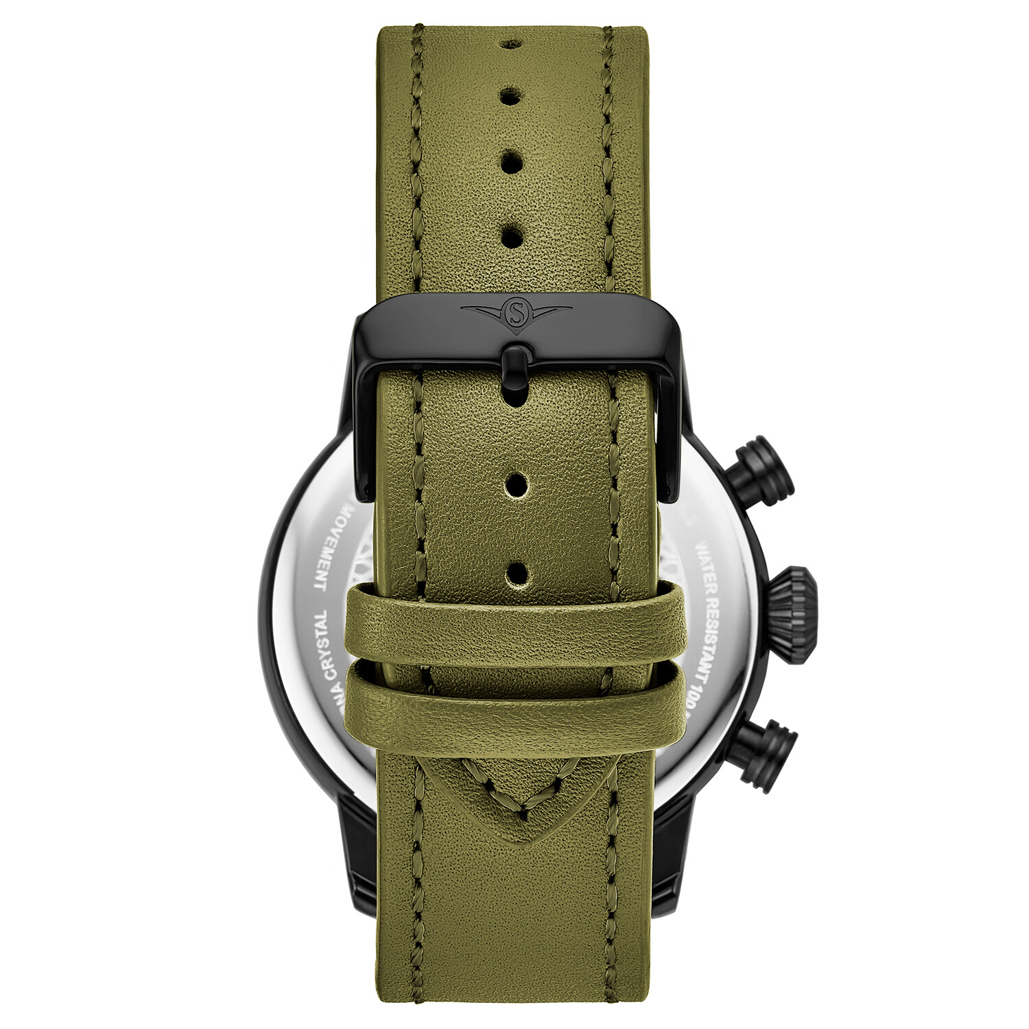 Stainless Steel Case on Black Genuine Leather Strap, Black Dial, with Silver Tone and White Accents